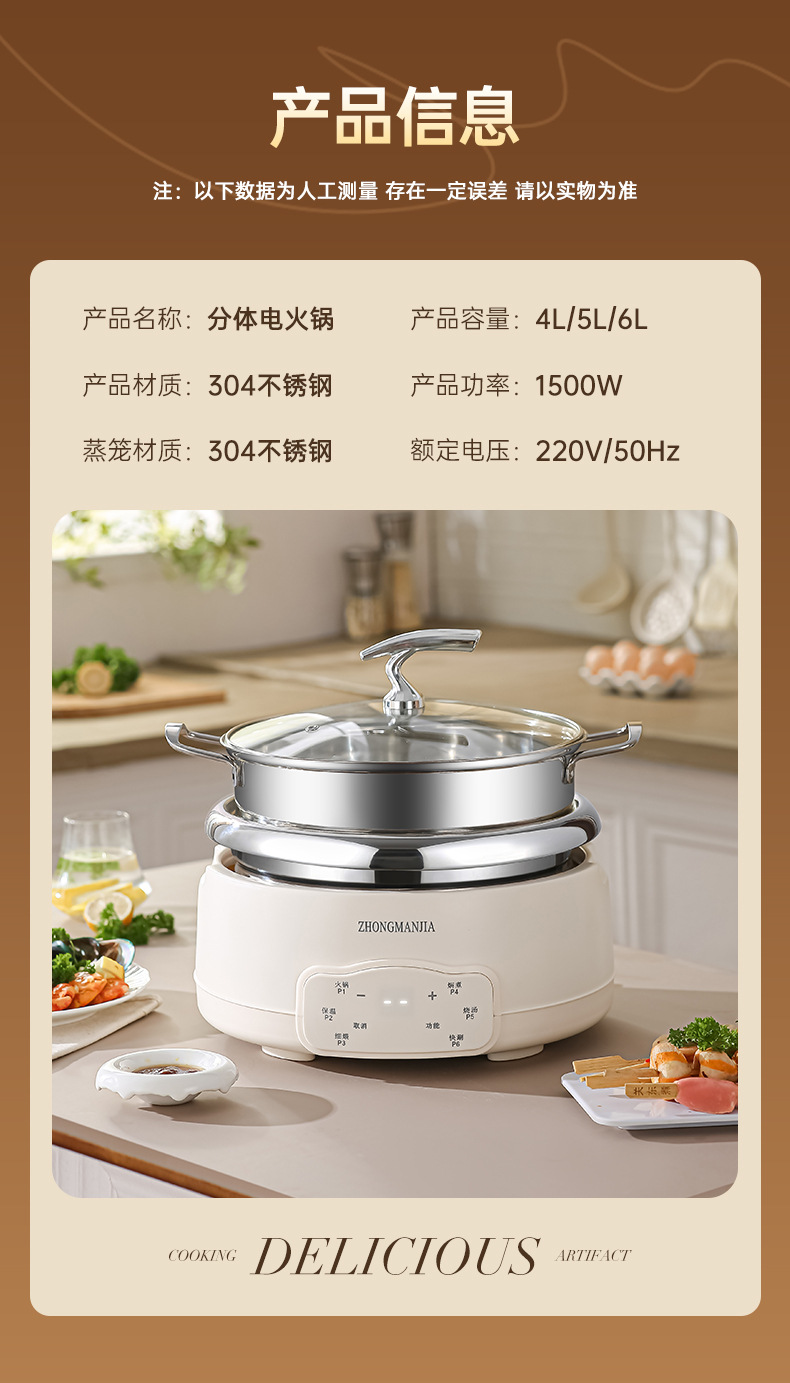 split electric chafing dish (single hot pot) plus a steamer