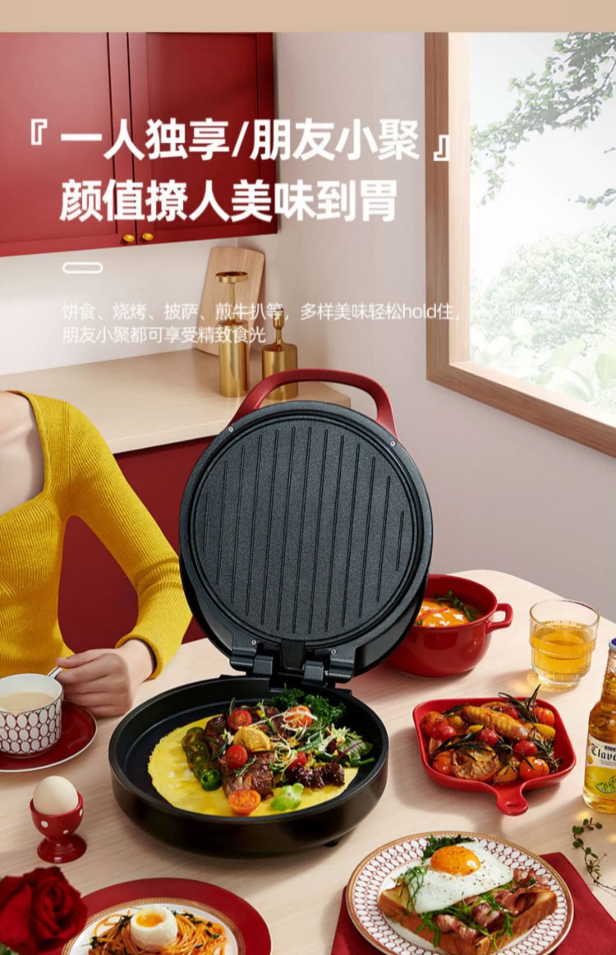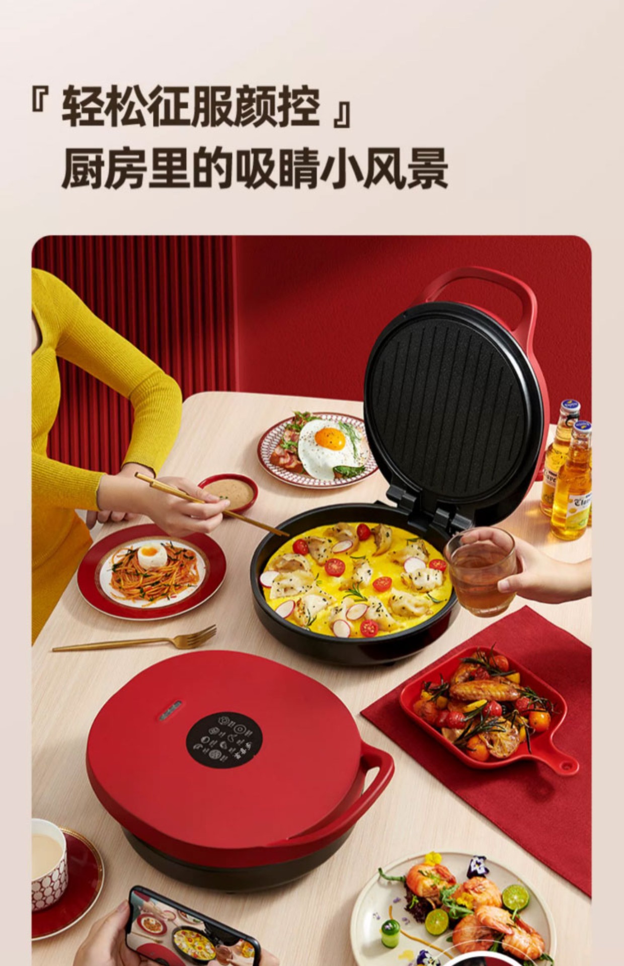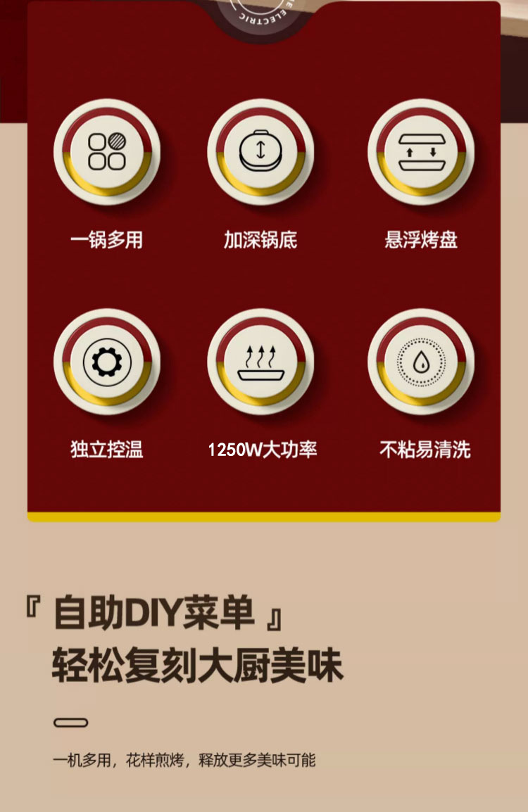 electric baking pan [large size 34cm] red circle + get wooden turner free