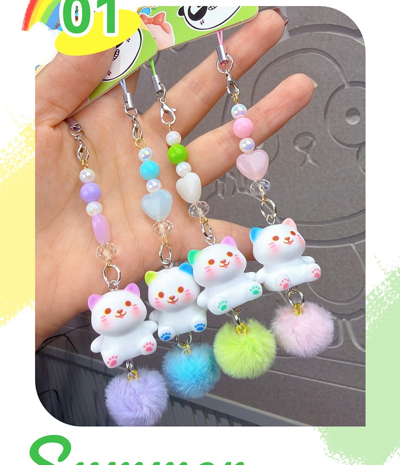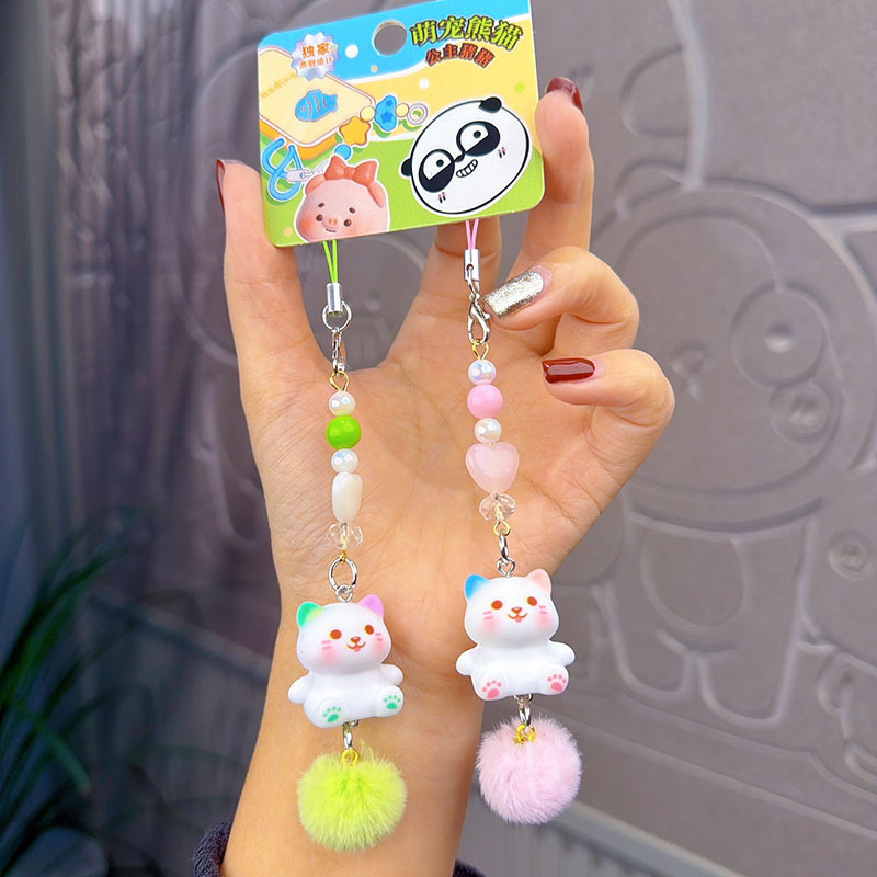 kitten mobile phone lanyard-green pink pair