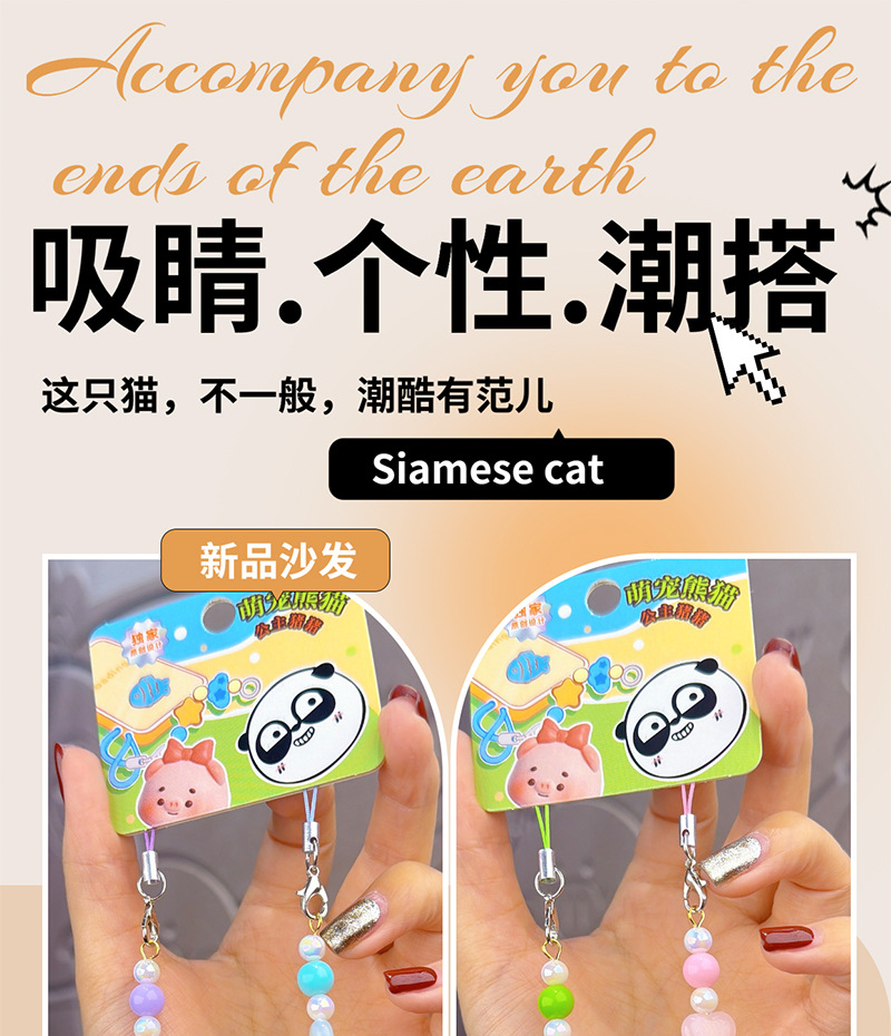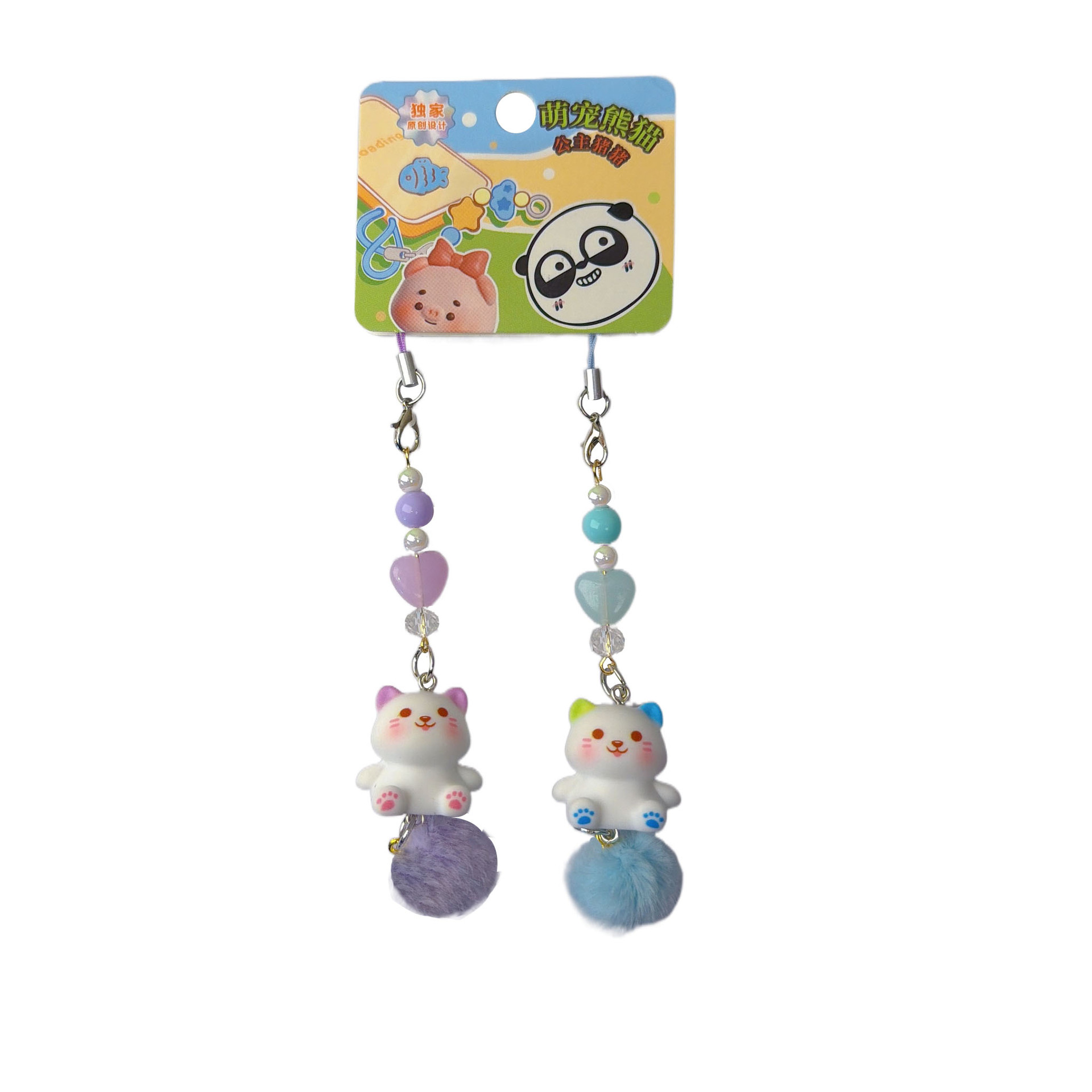 kitten mobile phone lanyard-purple blue pair