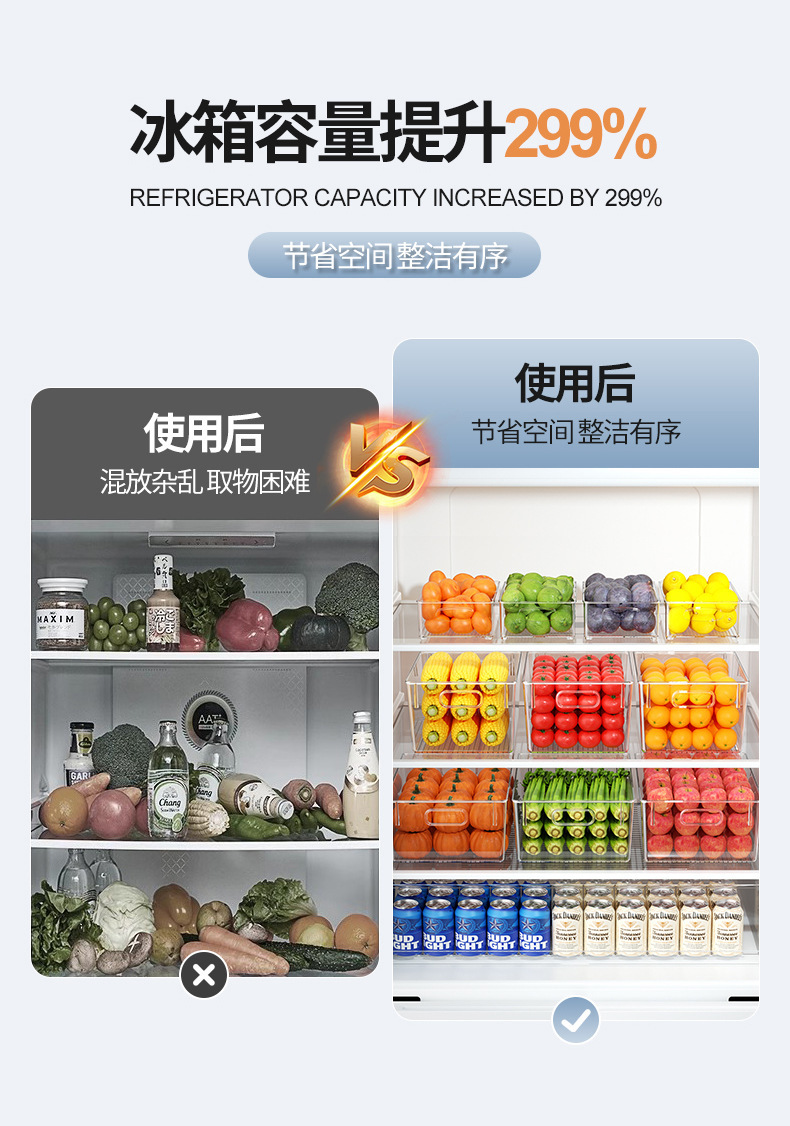 refrigerator storage box transparent visible high transparent acrylic pull-out fruit, vegetable and egg crisper with handle
