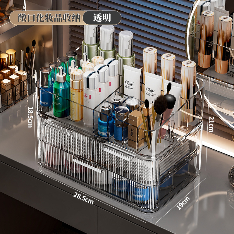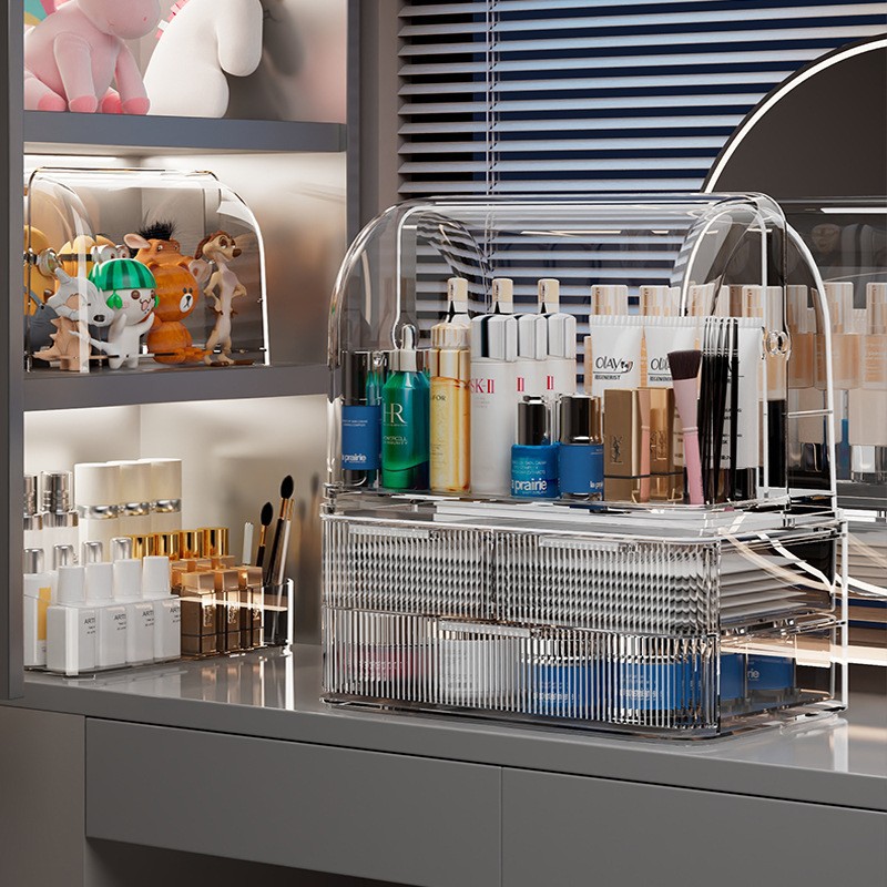 light luxury flip cosmetics storage box double-layer dustproof desktop cosmetic case dressing table lipstick case skin care products holder