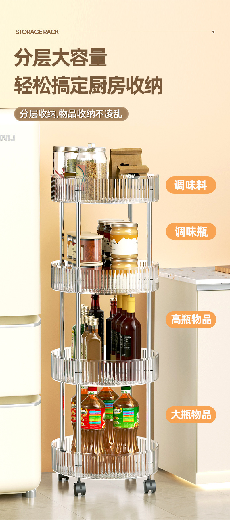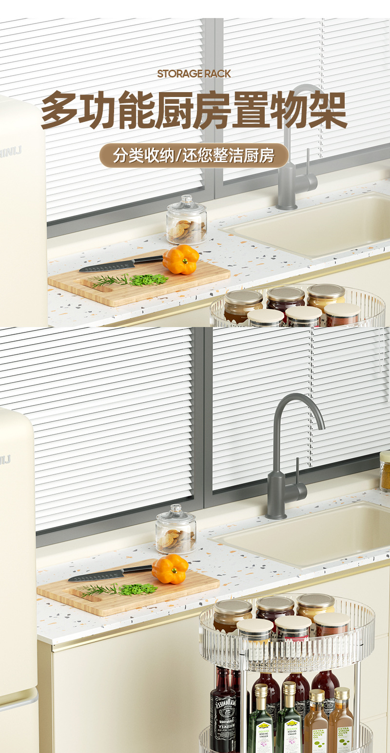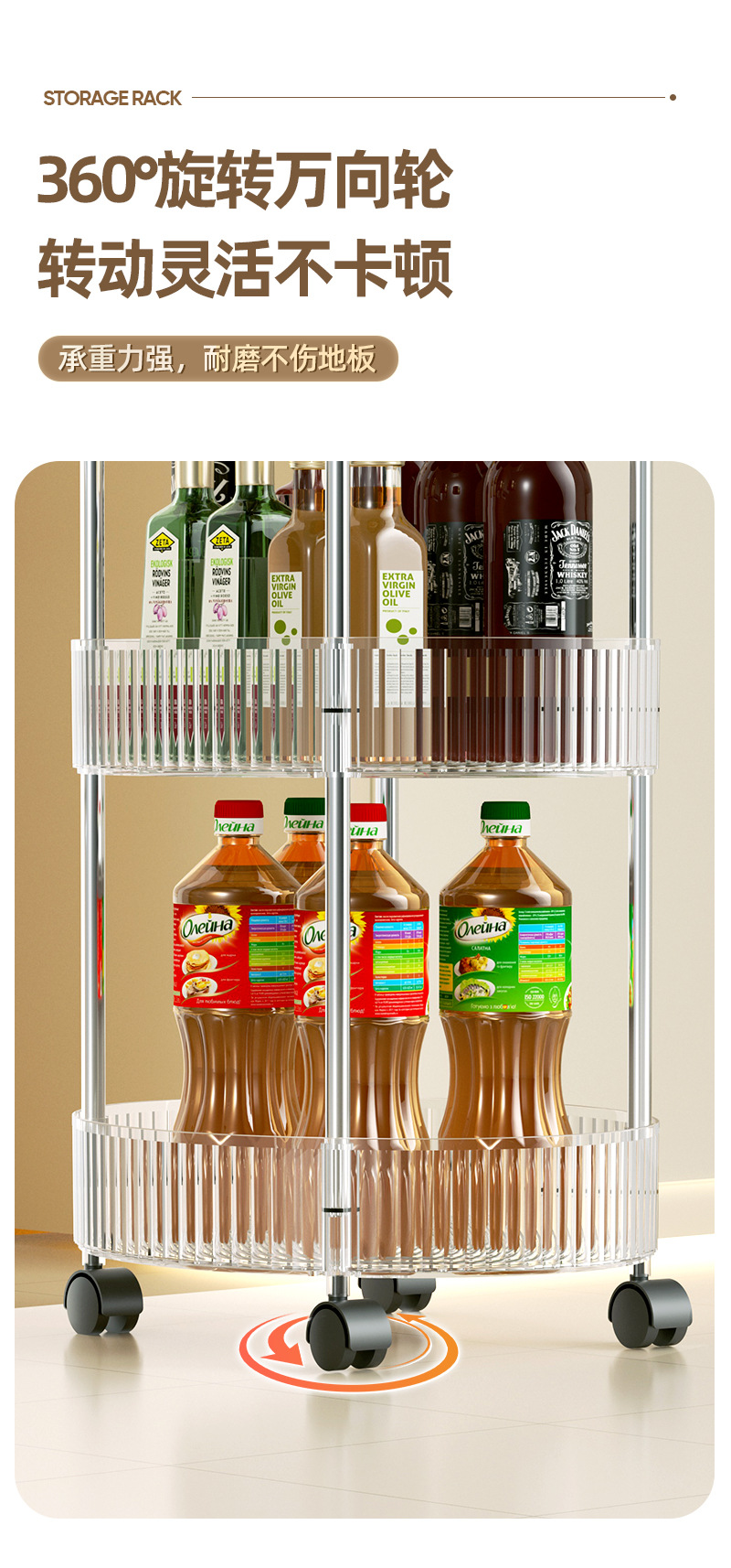 kitchen trolley oval storage rack with wheels multi-layer four-layer cruet storage desktop storage rack