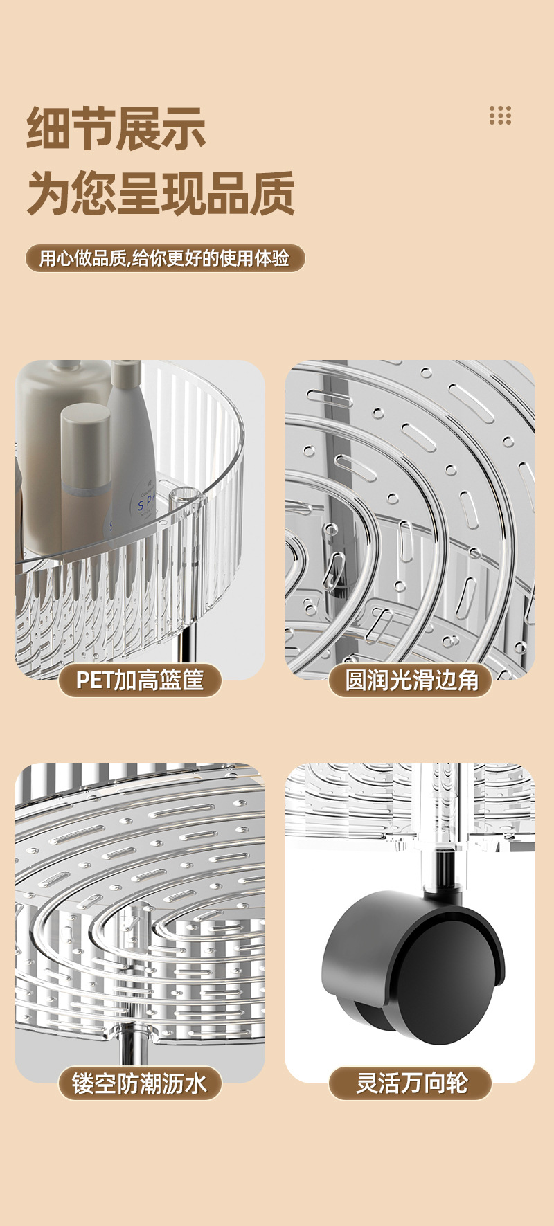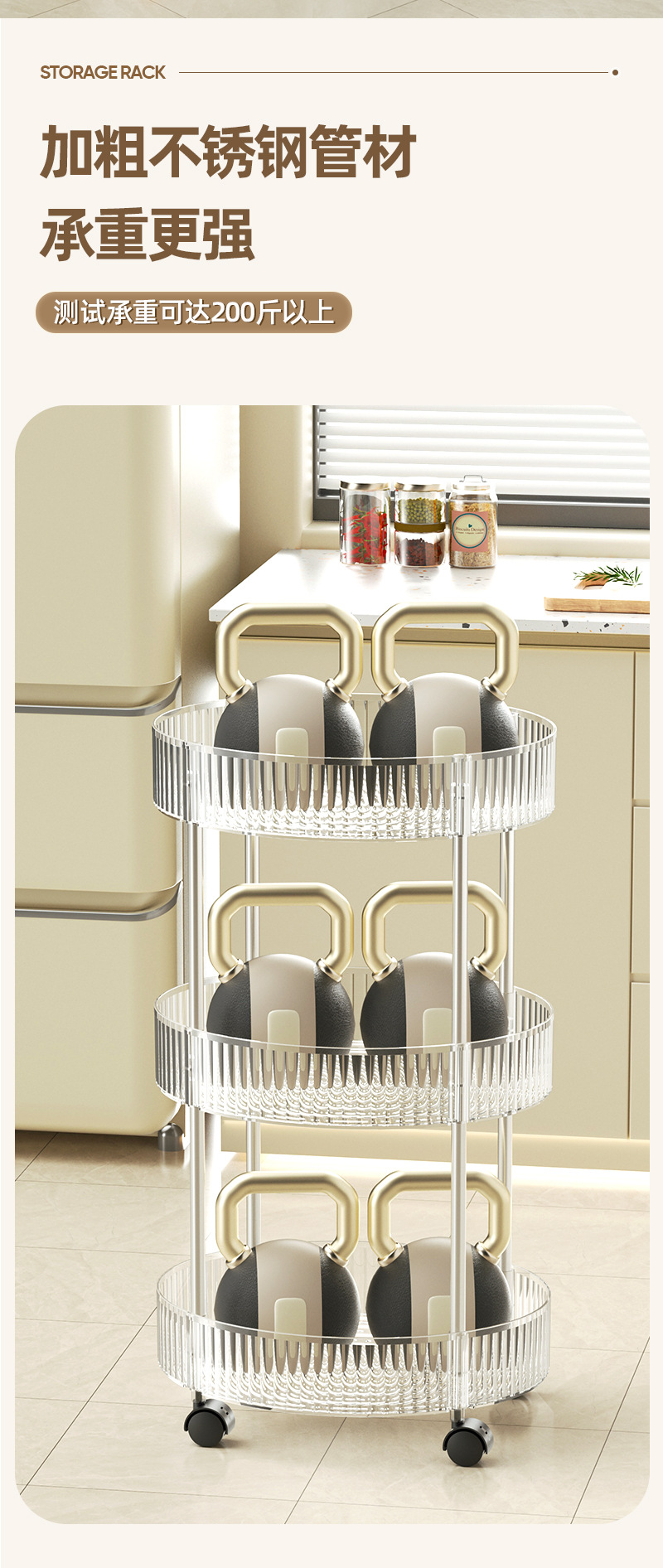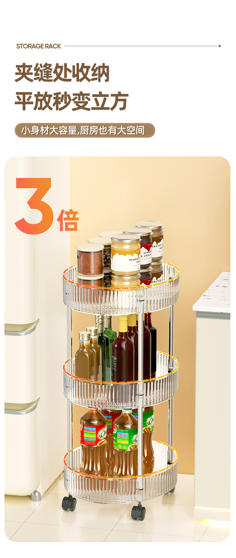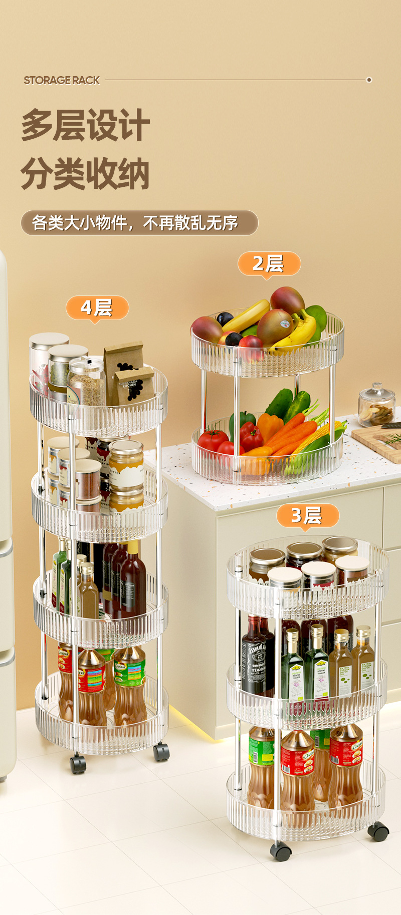 kitchen trolley oval storage rack with wheels multi-layer four-layer cruet storage desktop storage rack