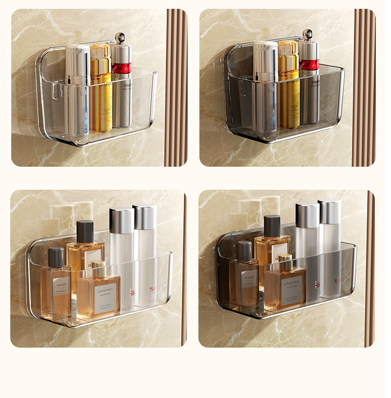 wall-mounted bathroom storage rack thick pet plastic wall cosmetic shelf bottom filter water hole