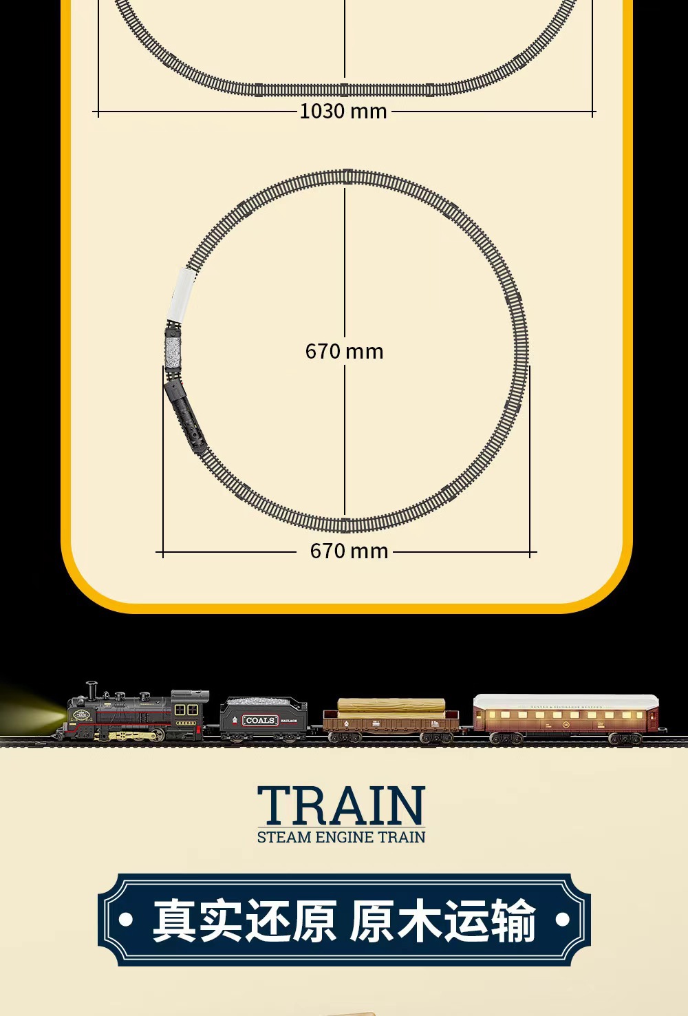 retro train model (1 front +5 carriages +19 tracks)