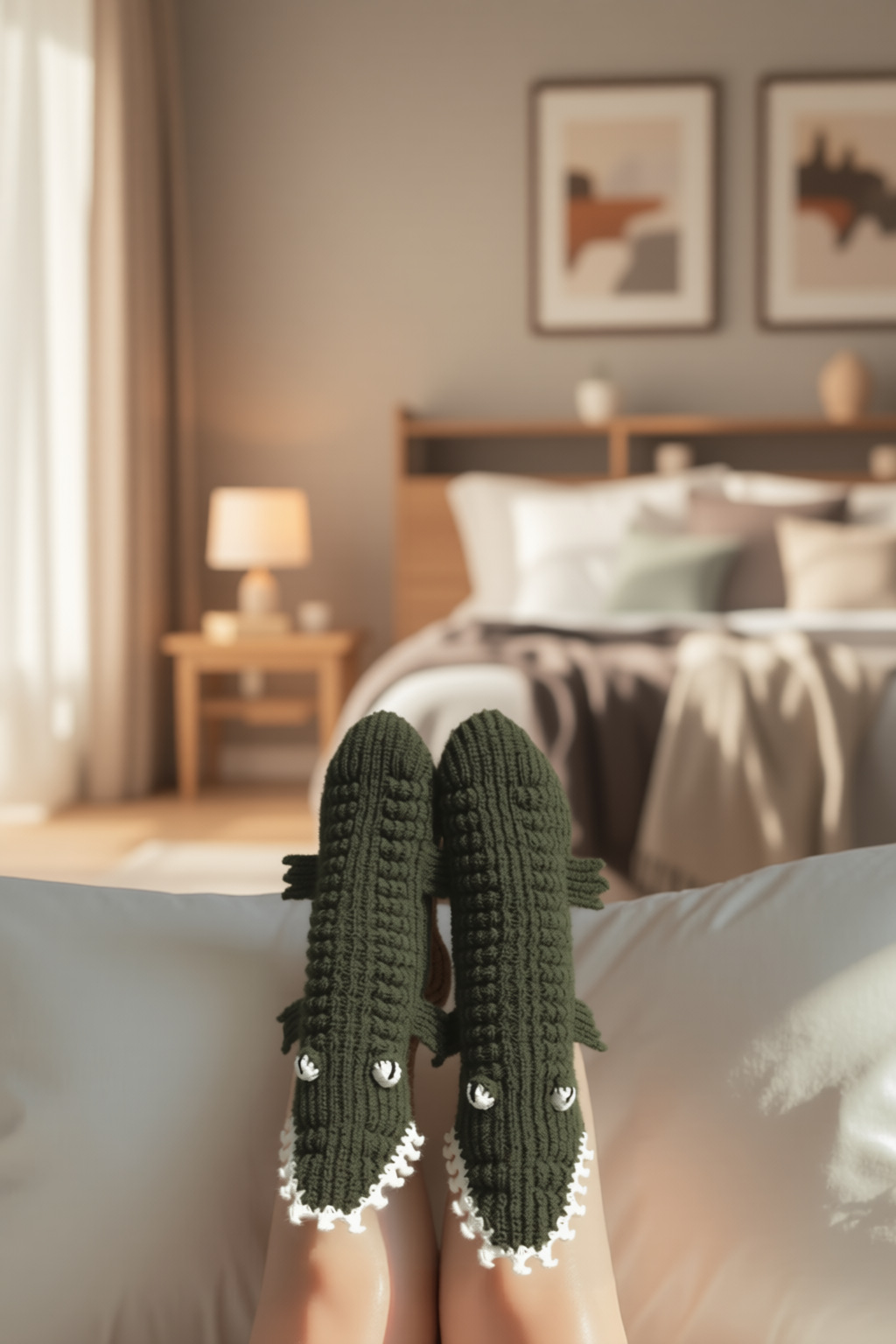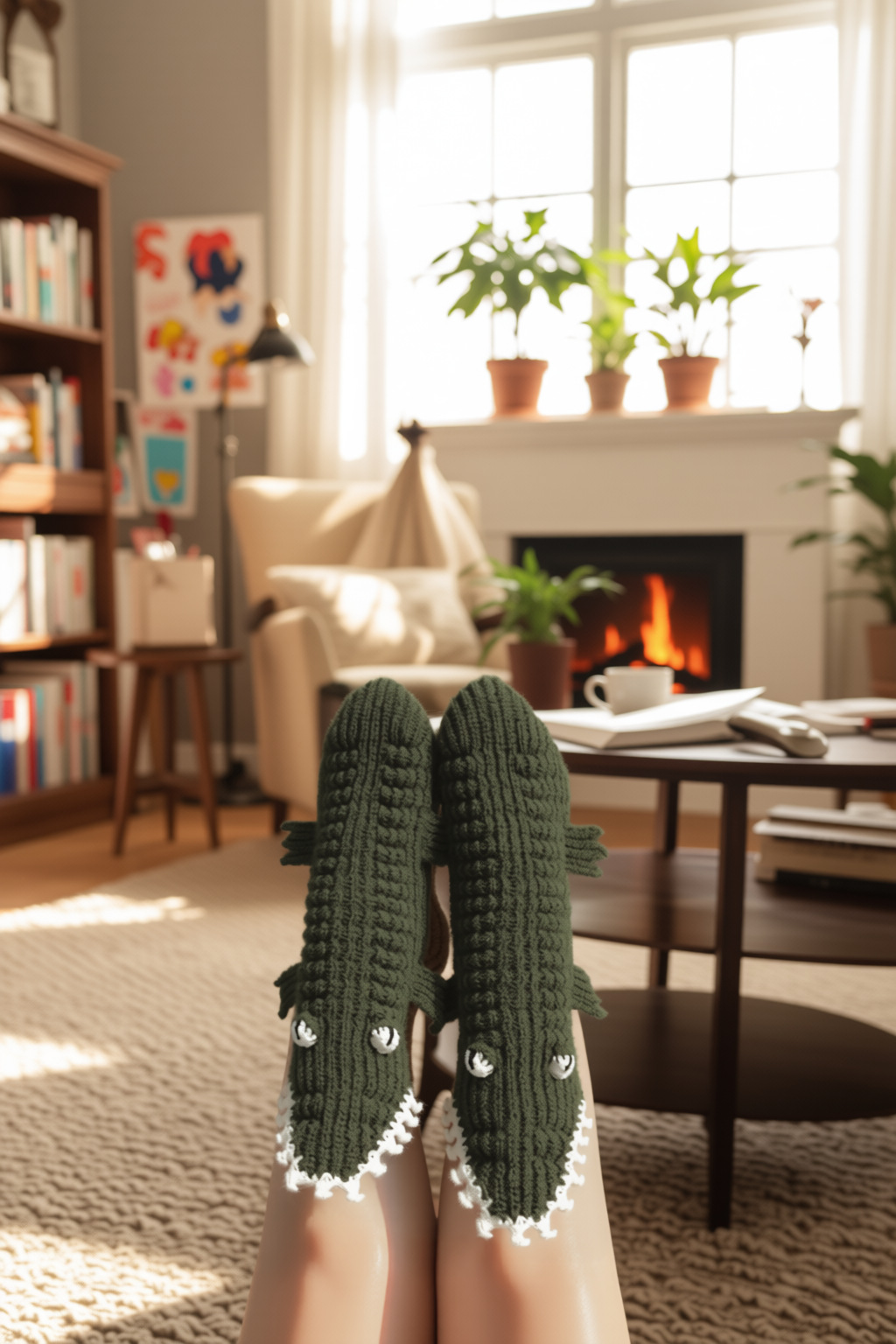 crocodile knitted socks-green
