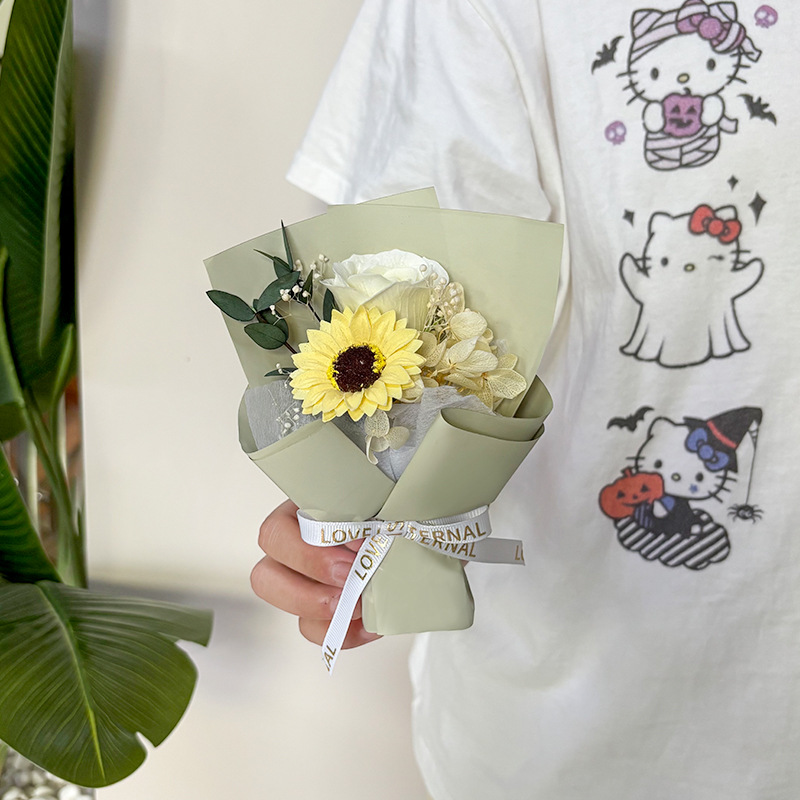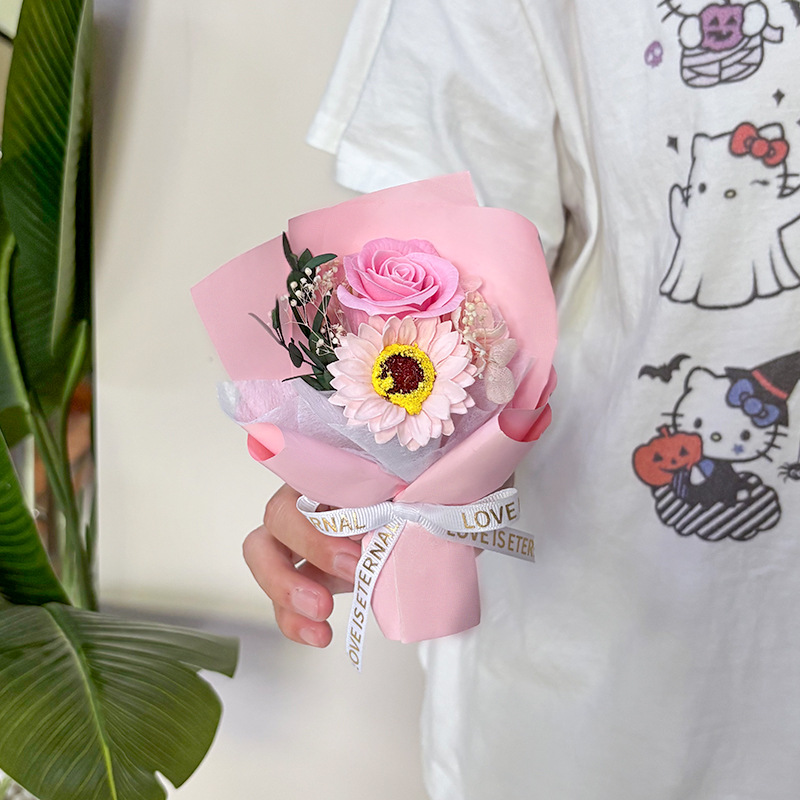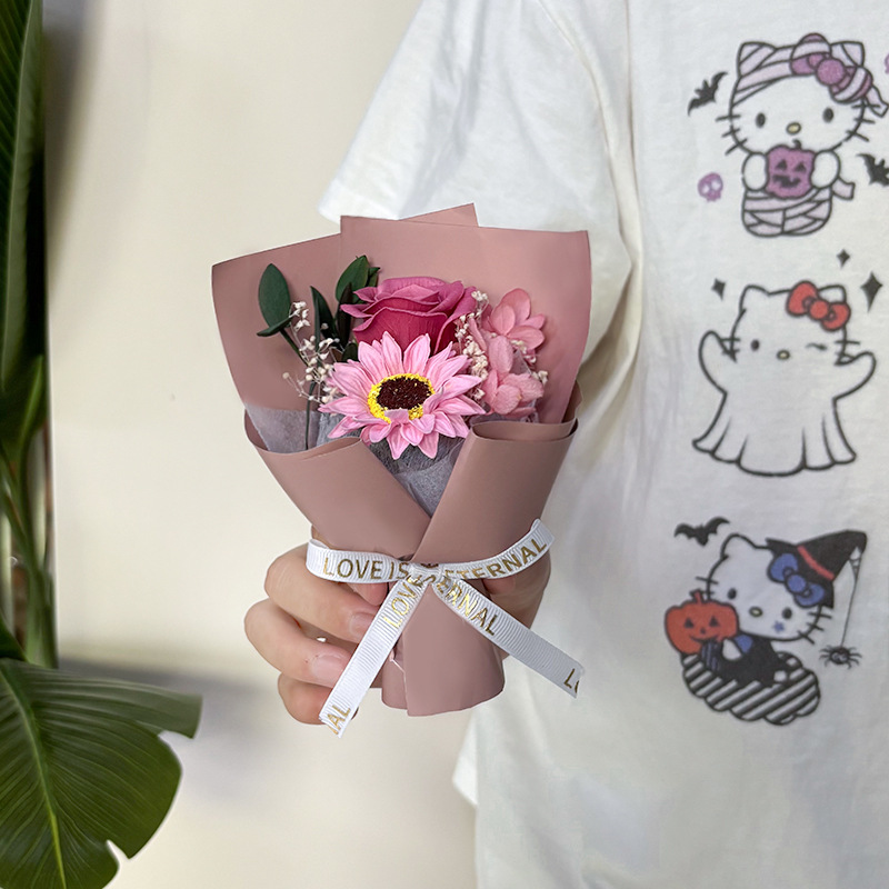 pink roses sunflower bouquet