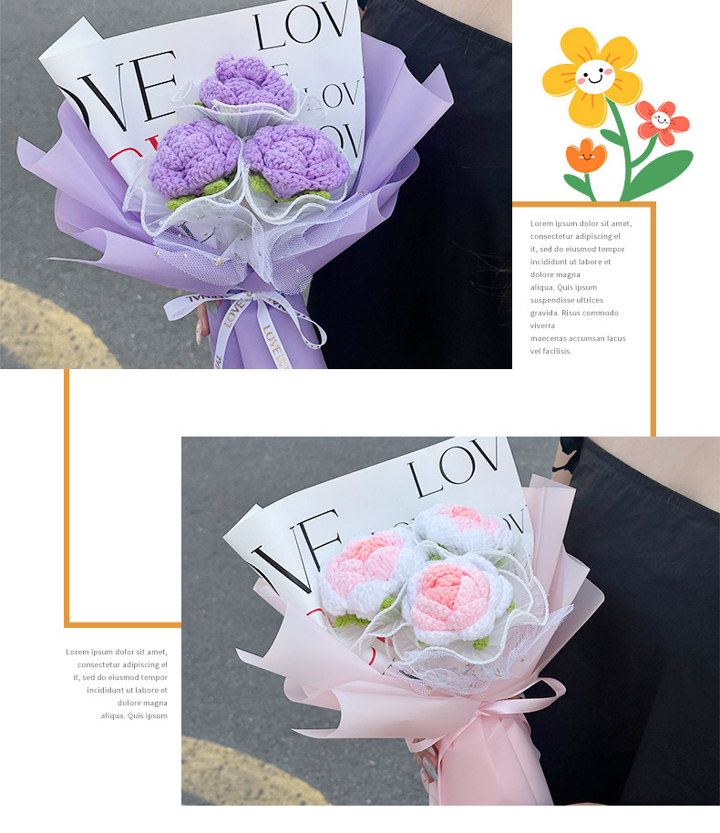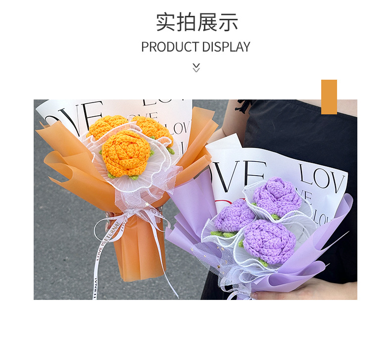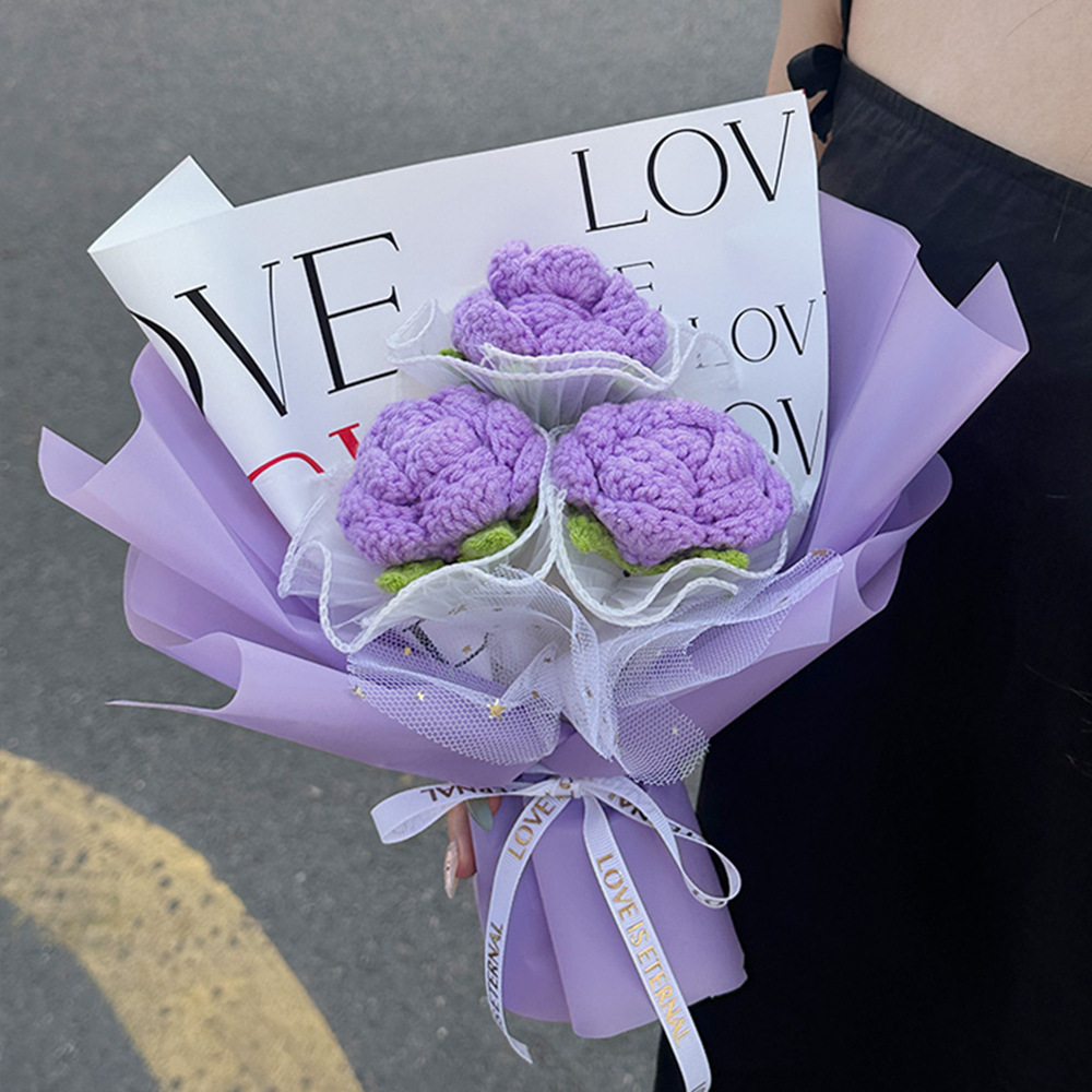 purple knitted rose (with gift box lighting chain)