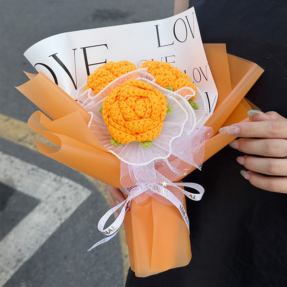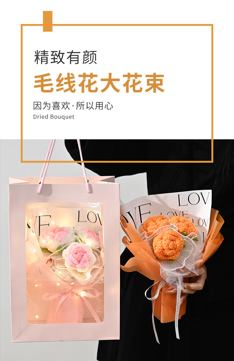 yellow knitted rose (with gift box lighting chain)