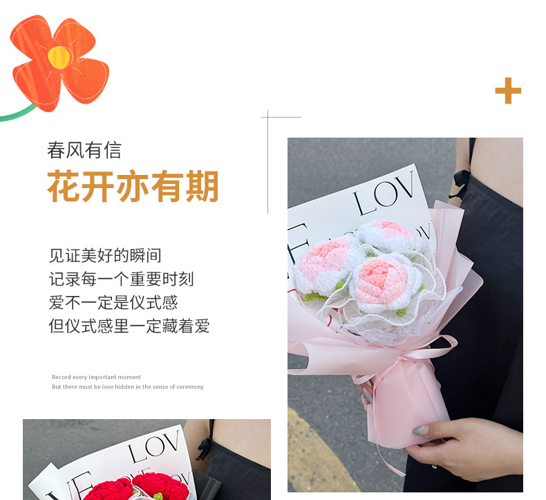 red knitted rose (with gift box lighting chain)
