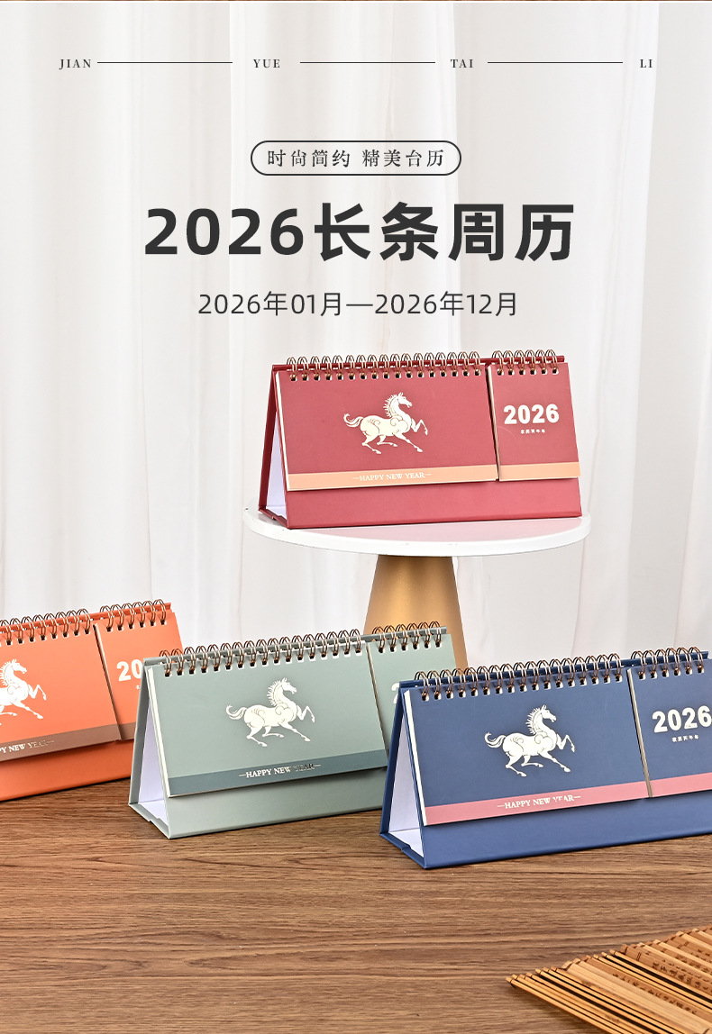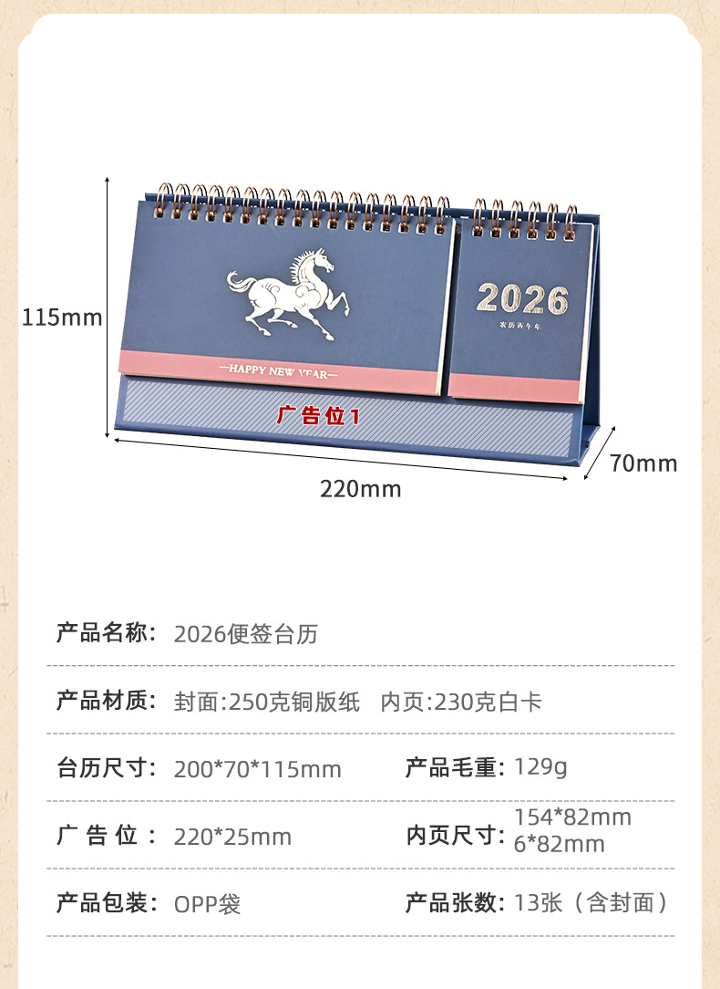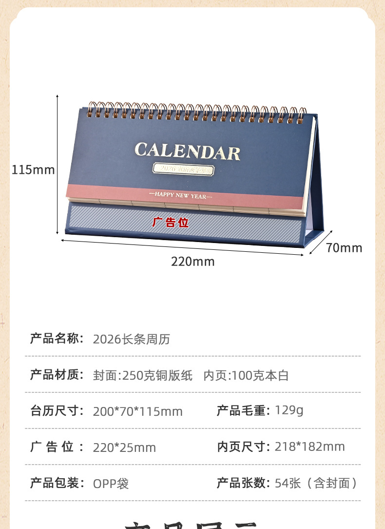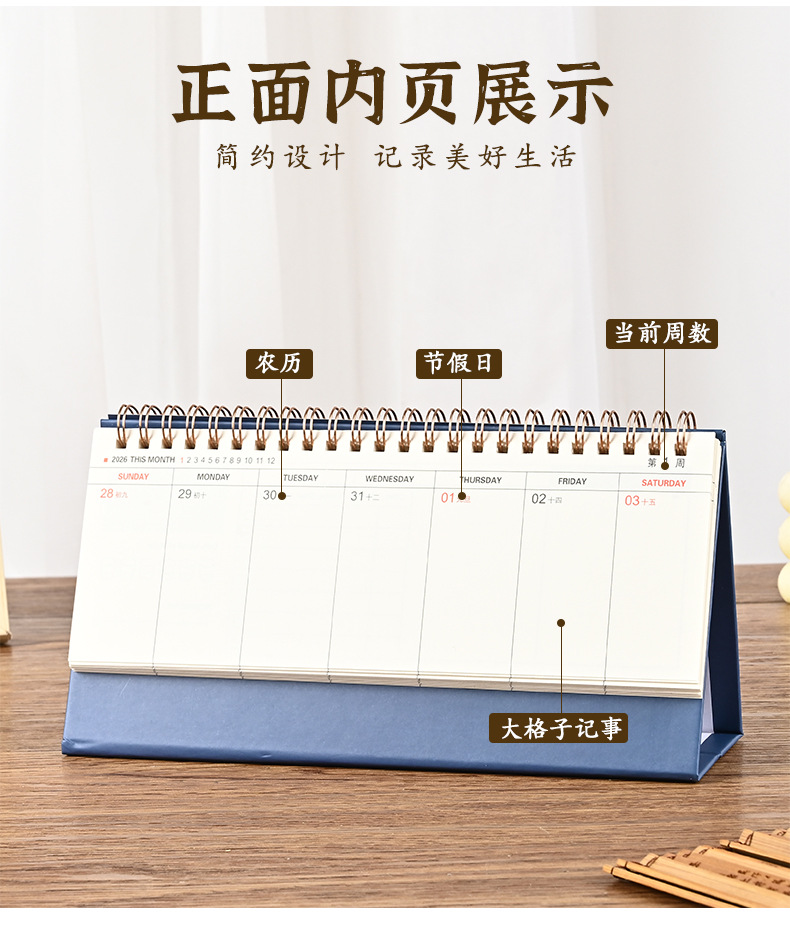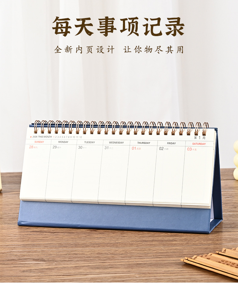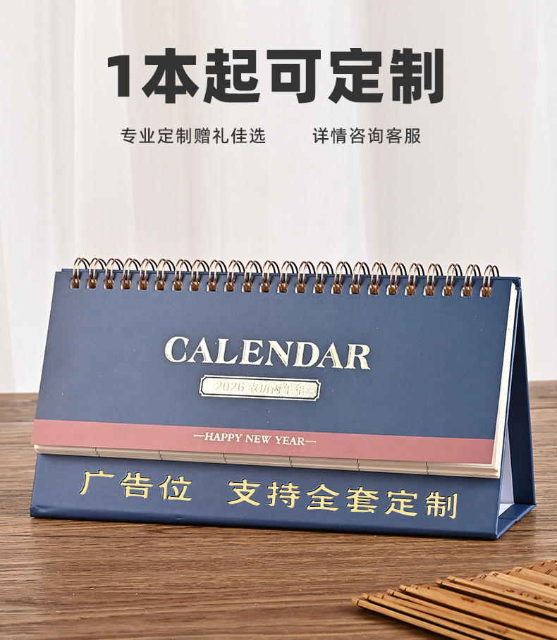 2026 navy blue/small horizontal note desk calendar