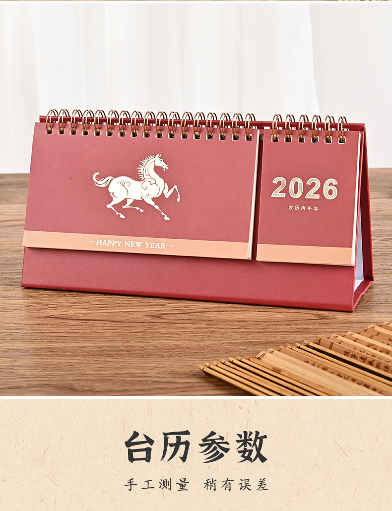 2026 red/small horizontal note desk calendar