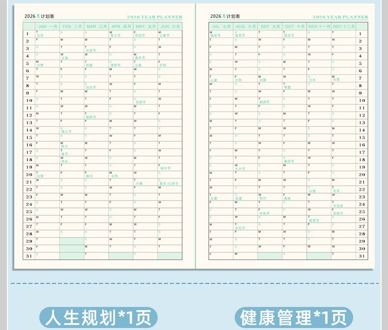[upgraded cloth leather] twilight green (one page a day)