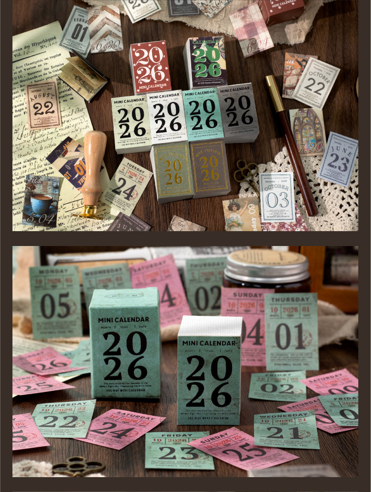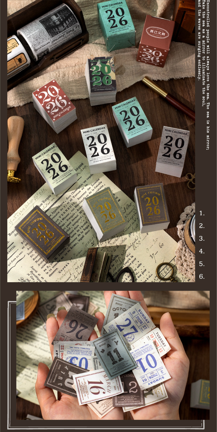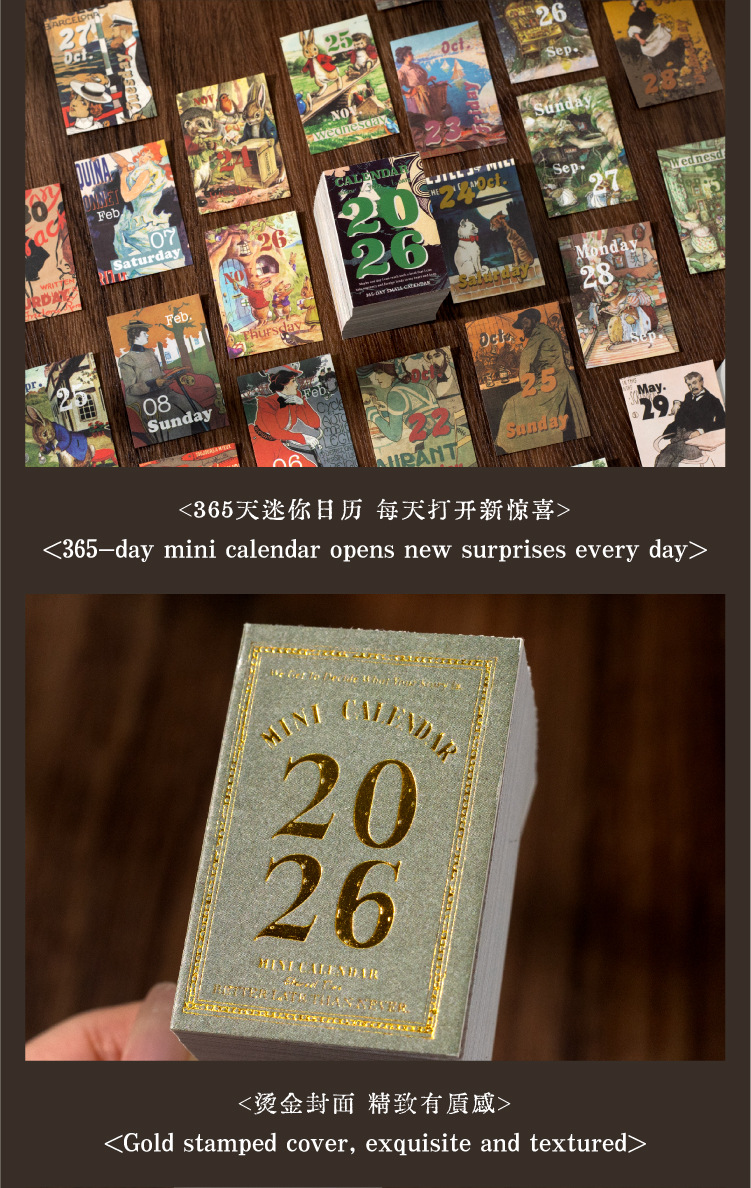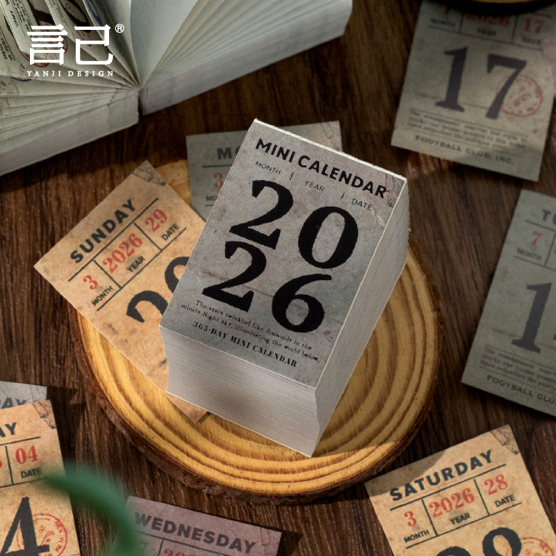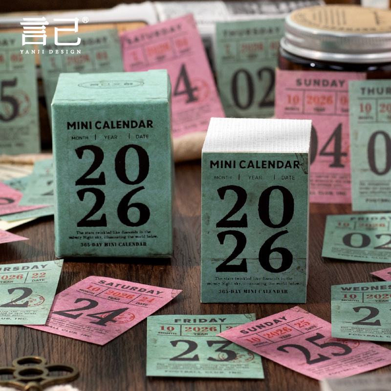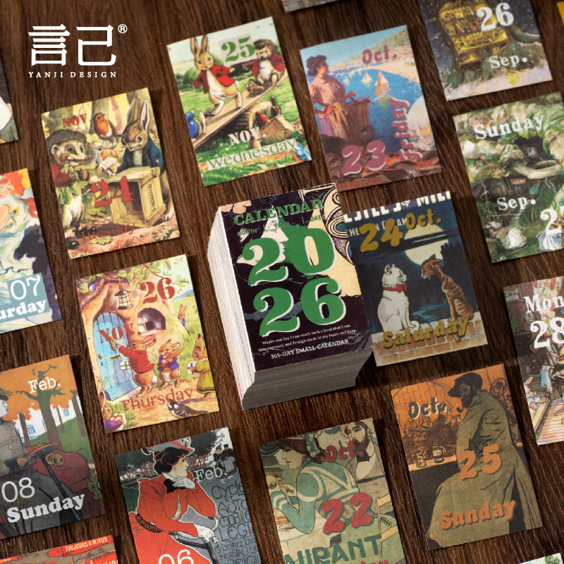 yan ji 2026 mini calendar retro artistic 365 days one page cartoon desktop calendar