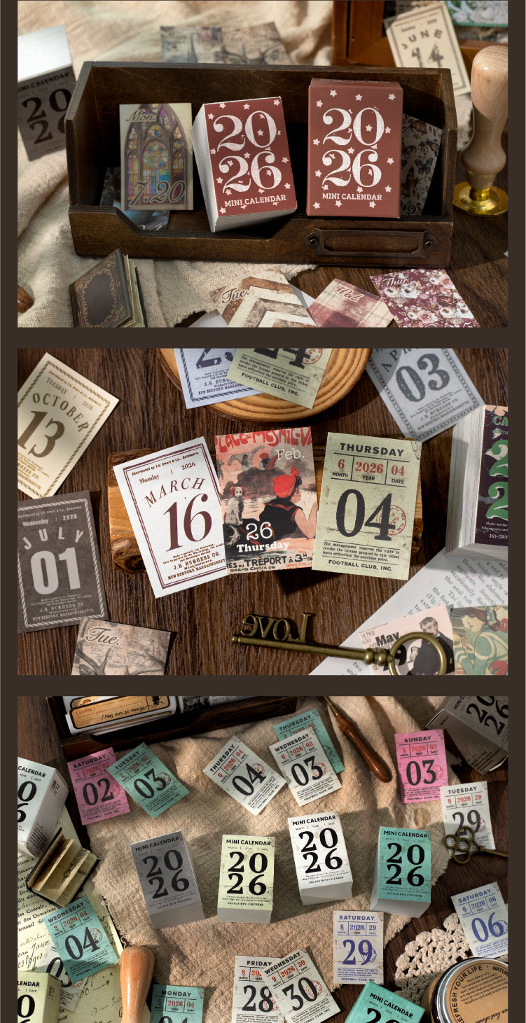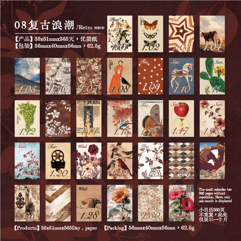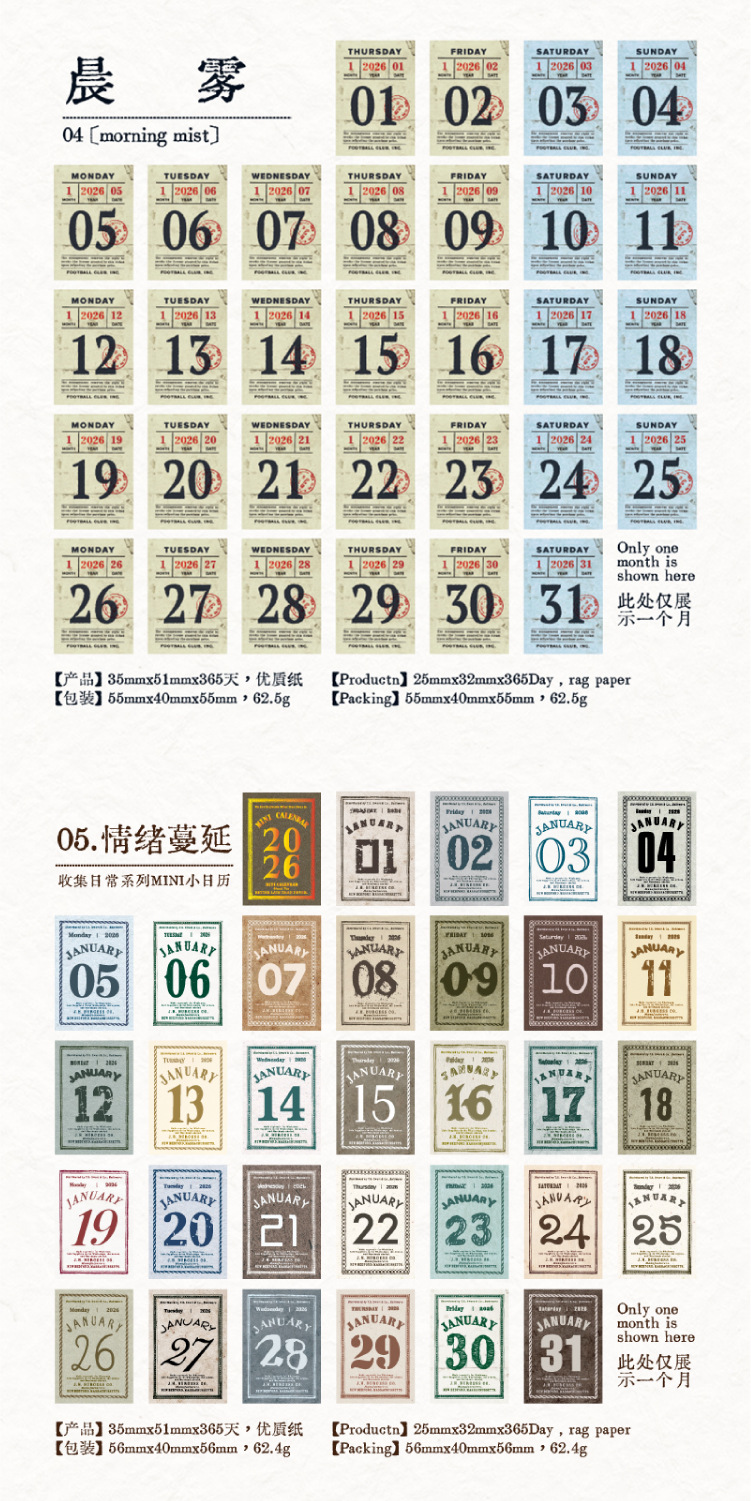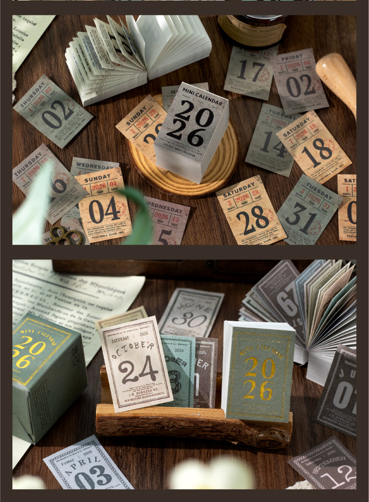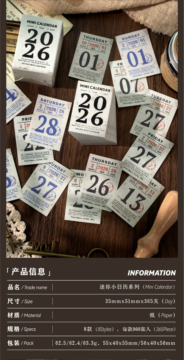 yan ji 2026 mini calendar retro artistic 365 days one page cartoon desktop calendar