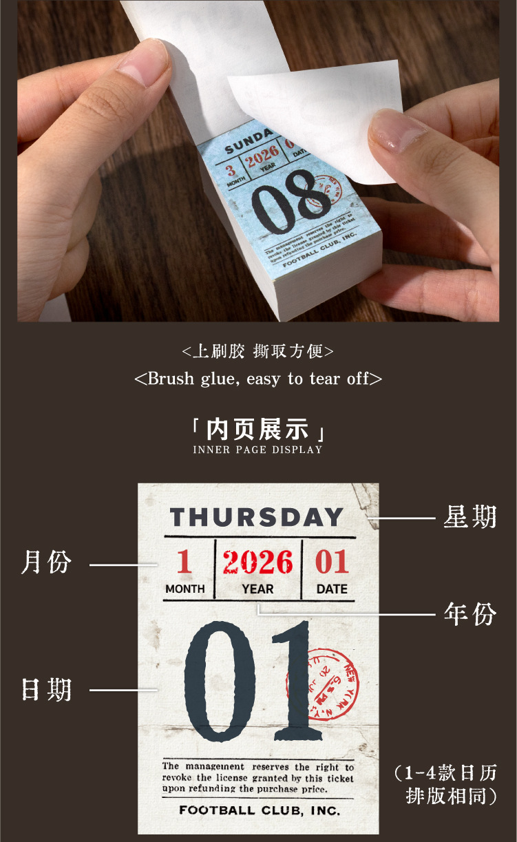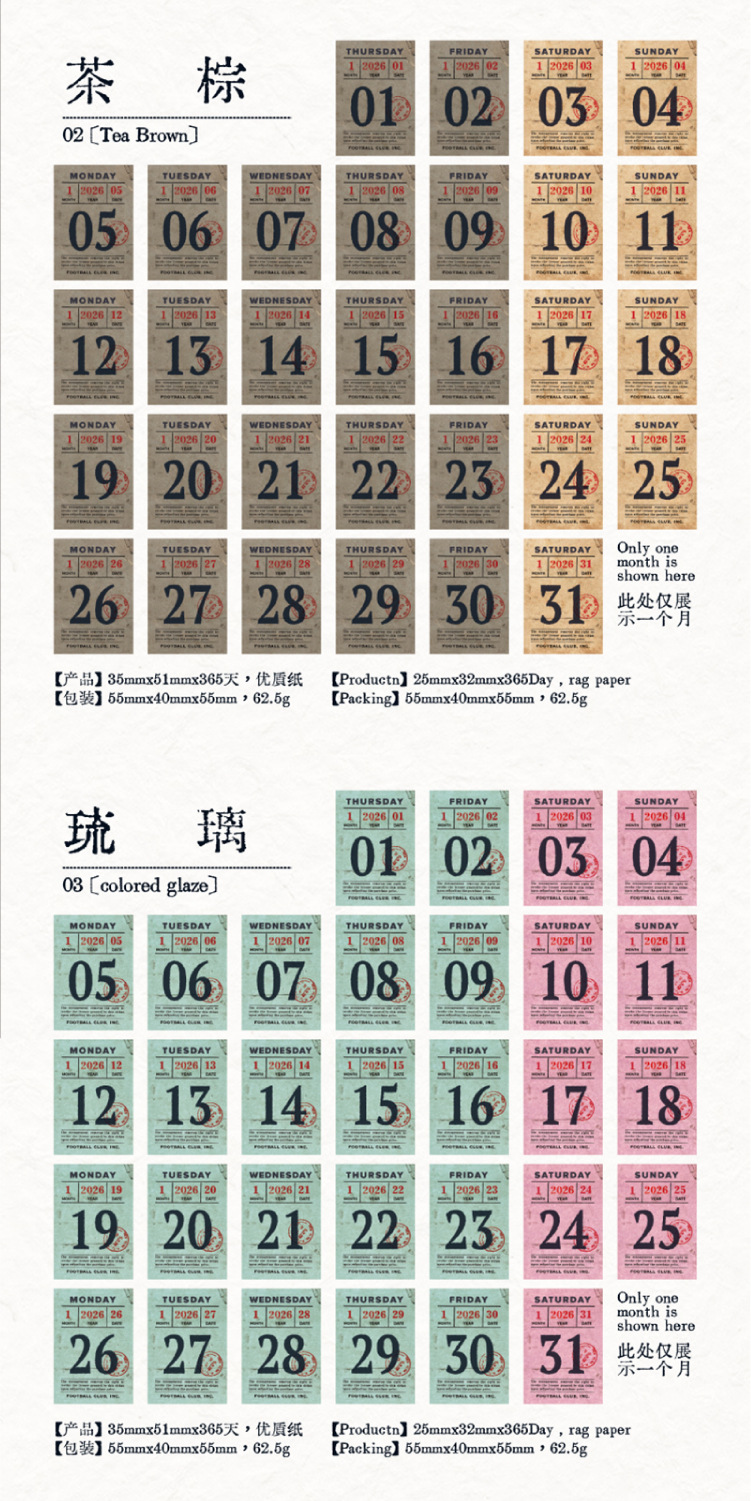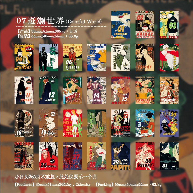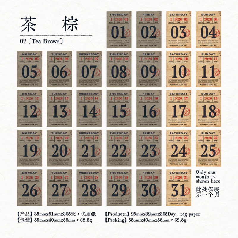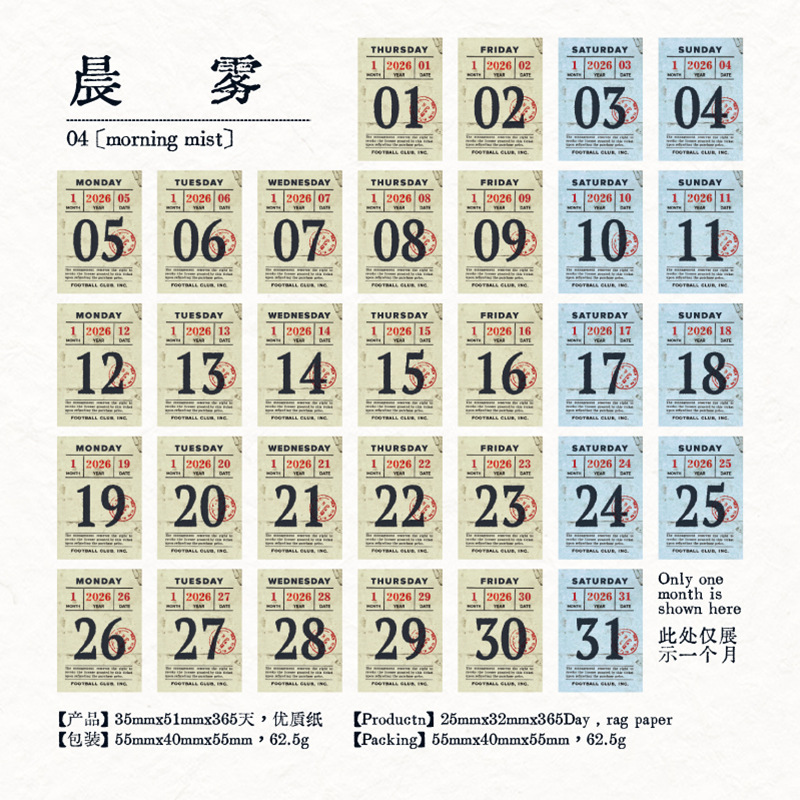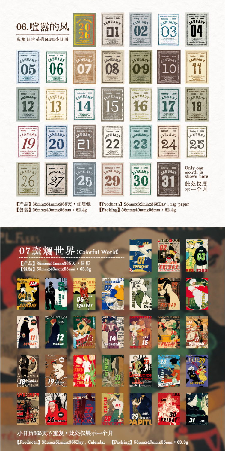 yan ji 2026 mini calendar retro artistic 365 days one page cartoon desktop calendar