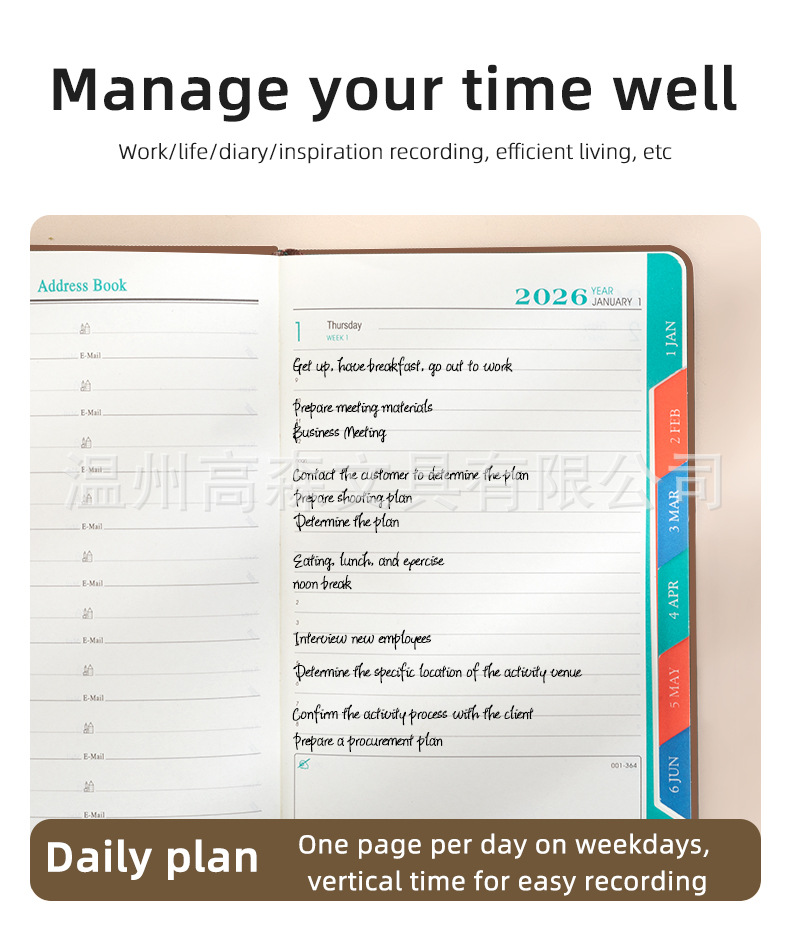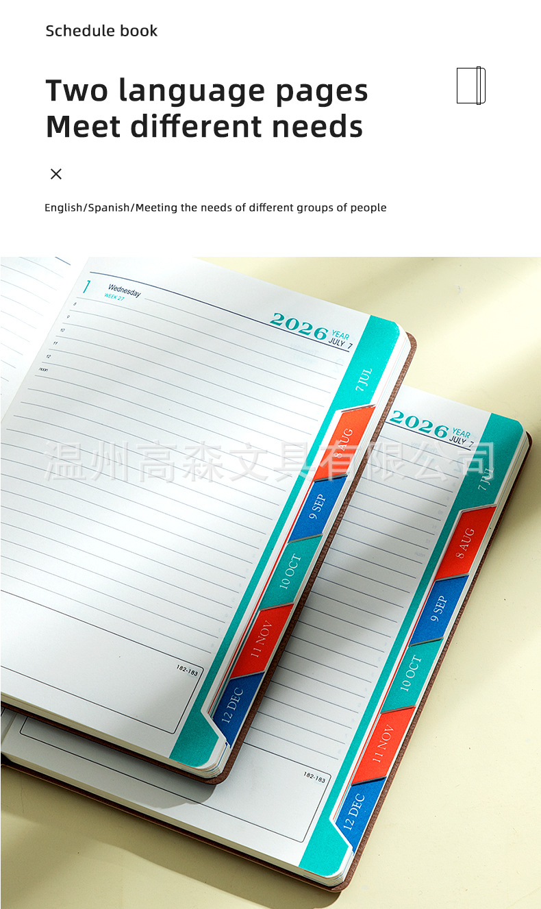 26 english [big label] missing edge schedule book-brown + accessories-adhesive sticker-planning (5 pieces)