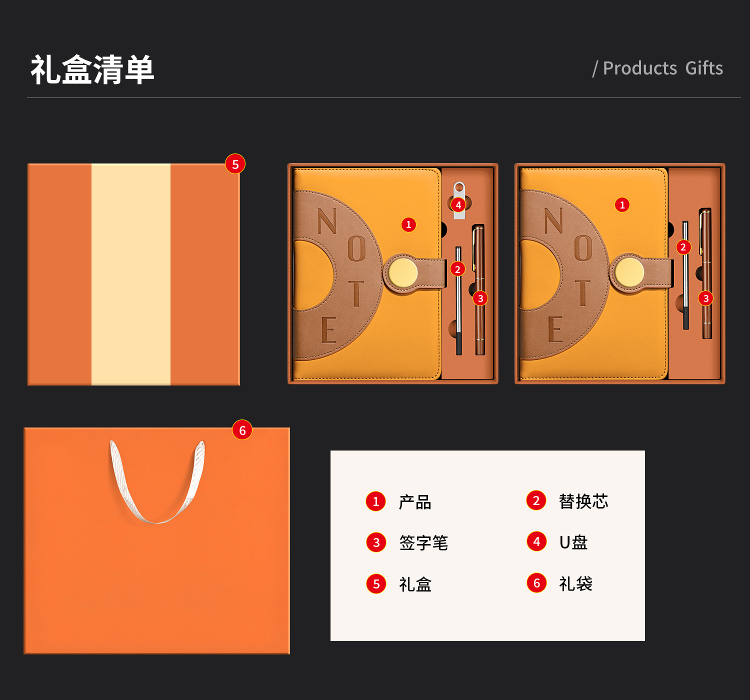 vibrant orange [floating leather gift box + u disk]]