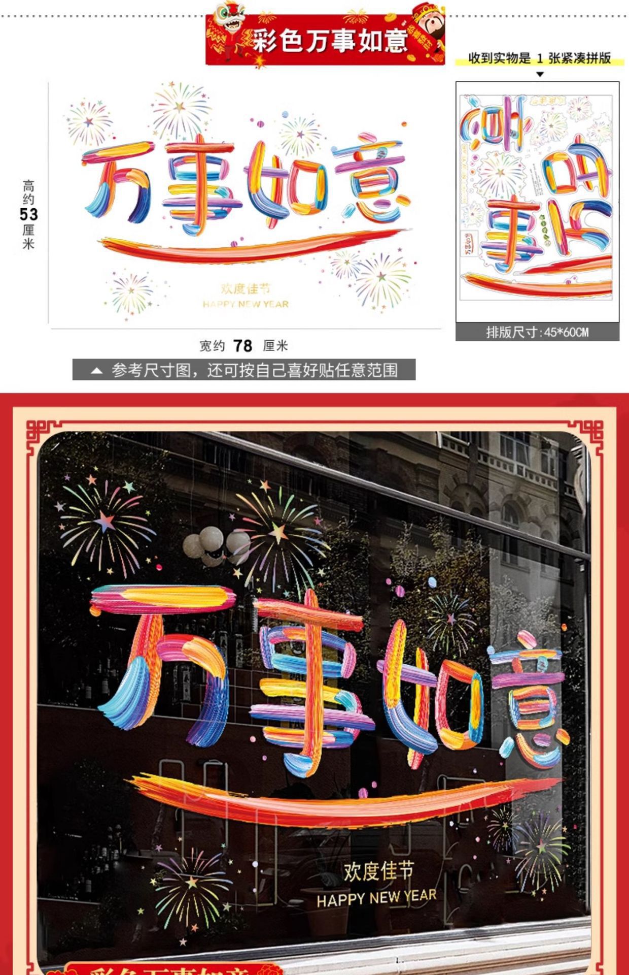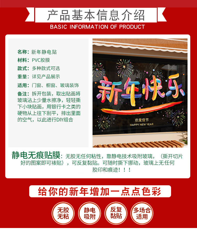 33. colorful happy new year [static glue-free] [double-sided same color]]