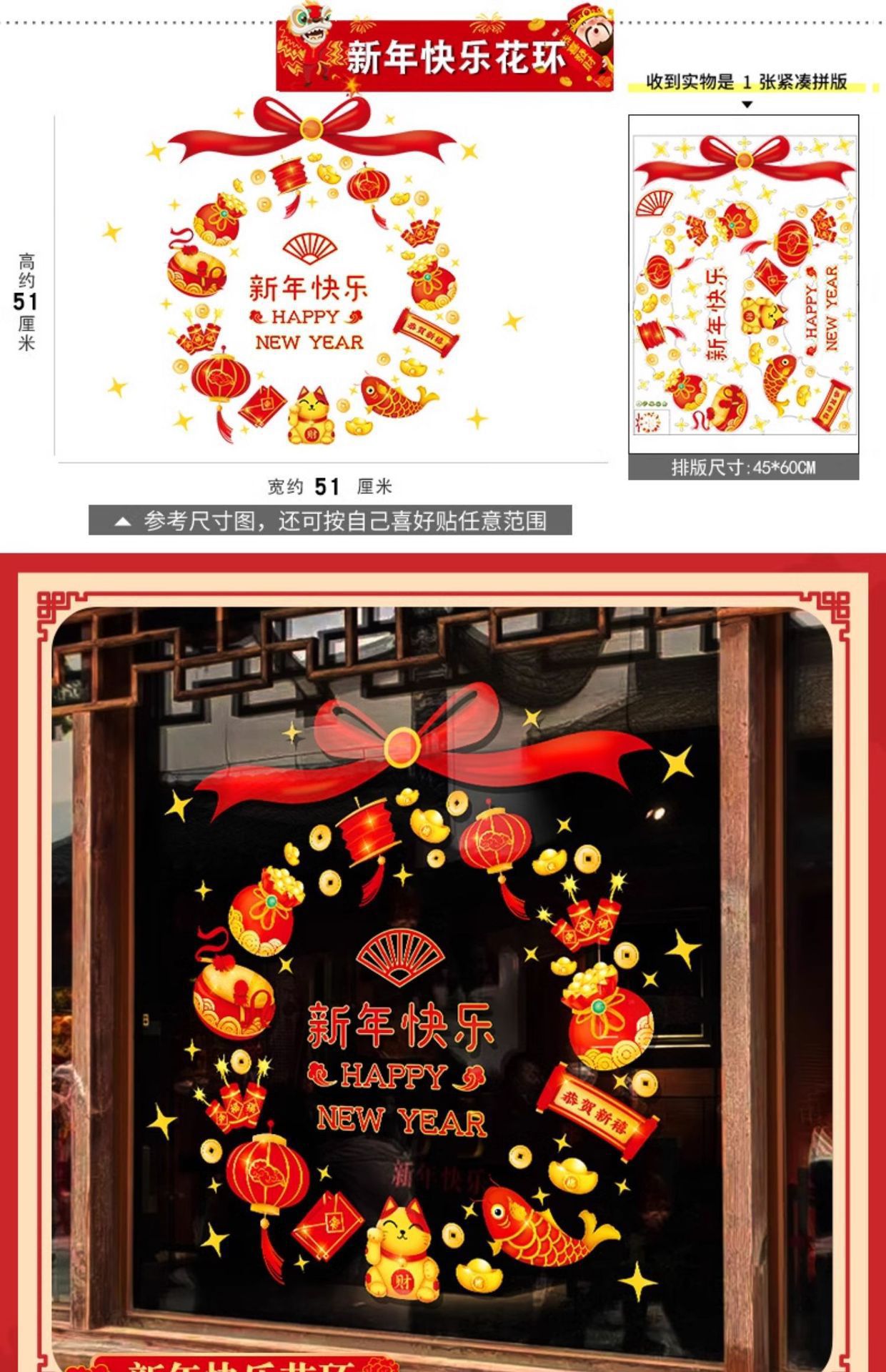 01. new year's fu character door sticker [static glue-free] [double-sided same color]]