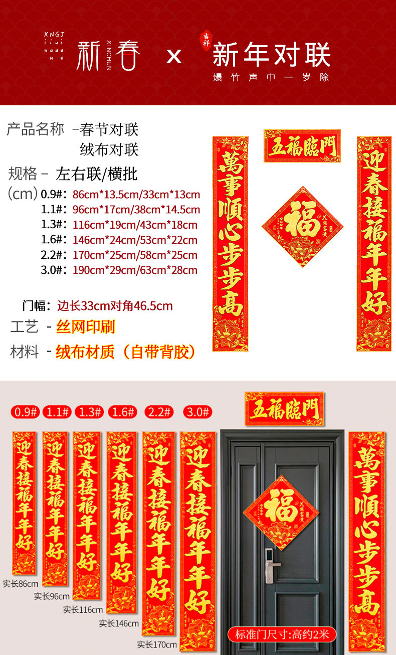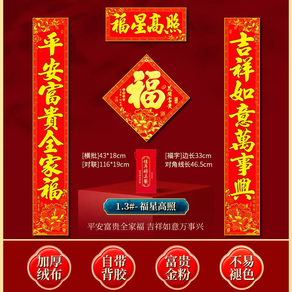 | version flannel flowers couplet (with adhesive) (this option does not contain fu characters) | CN¥ 13.3 | 1000 piece available |