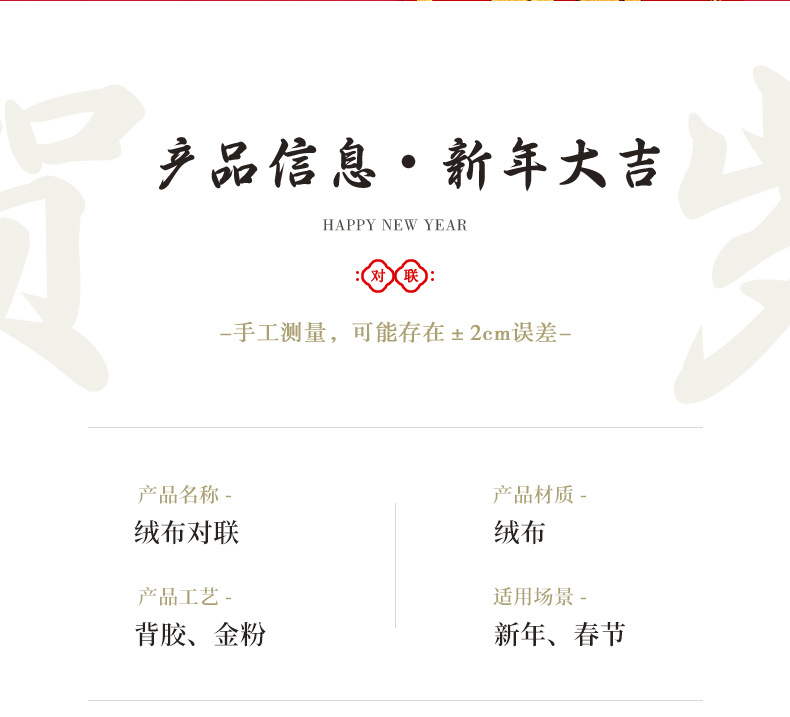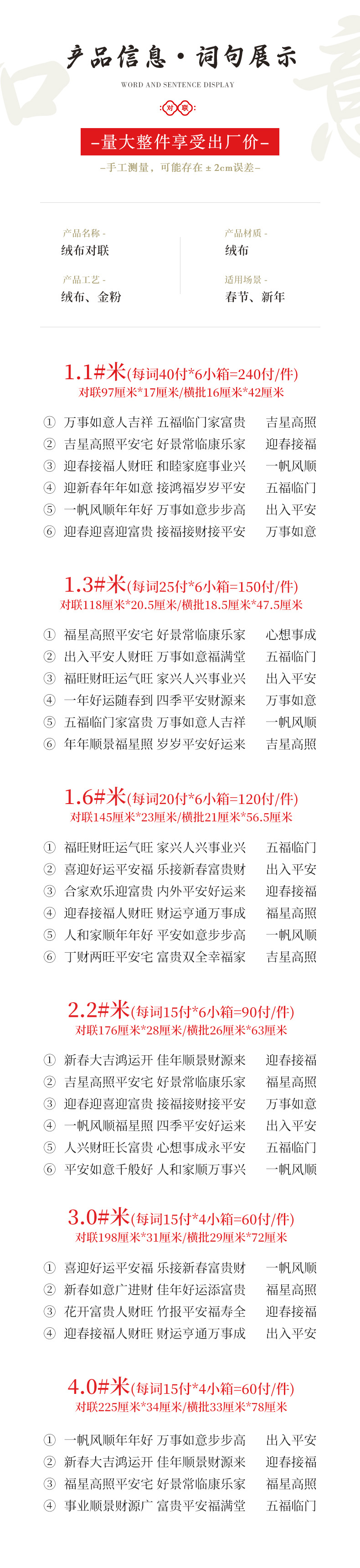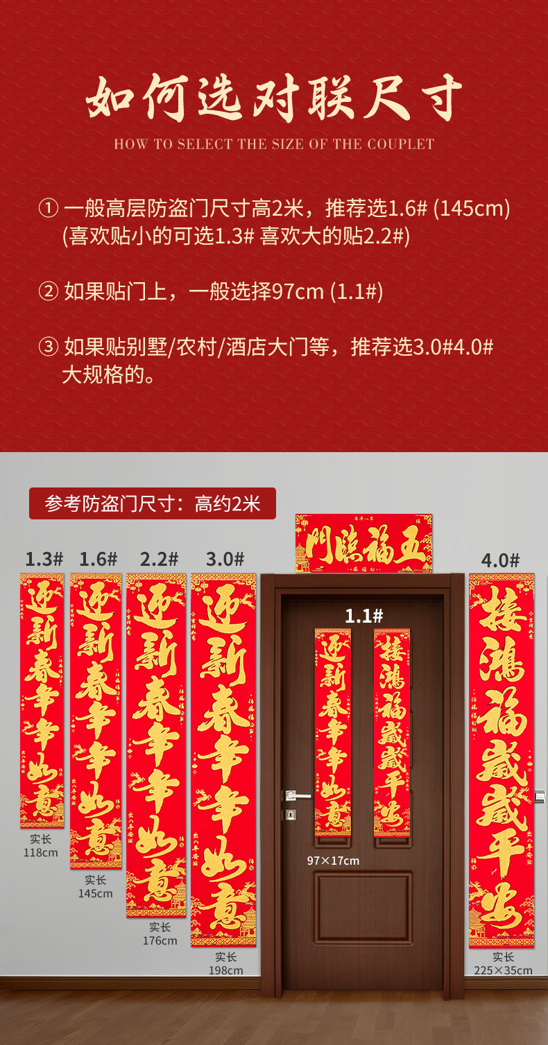 | 1.6m welcome good luck, peace, happiness, and wealth in the spring festival | CN¥ 16.86 | 3000 pair available |