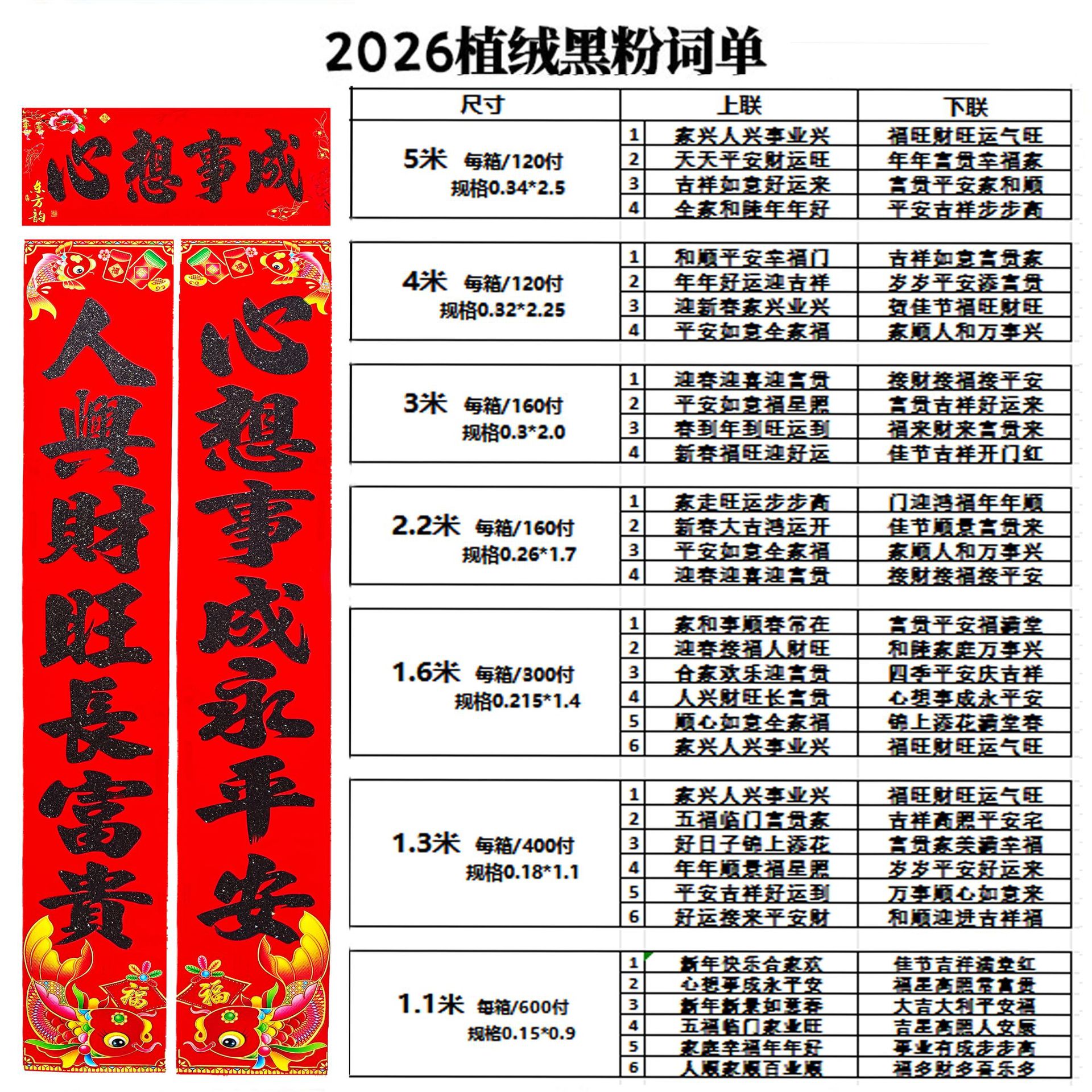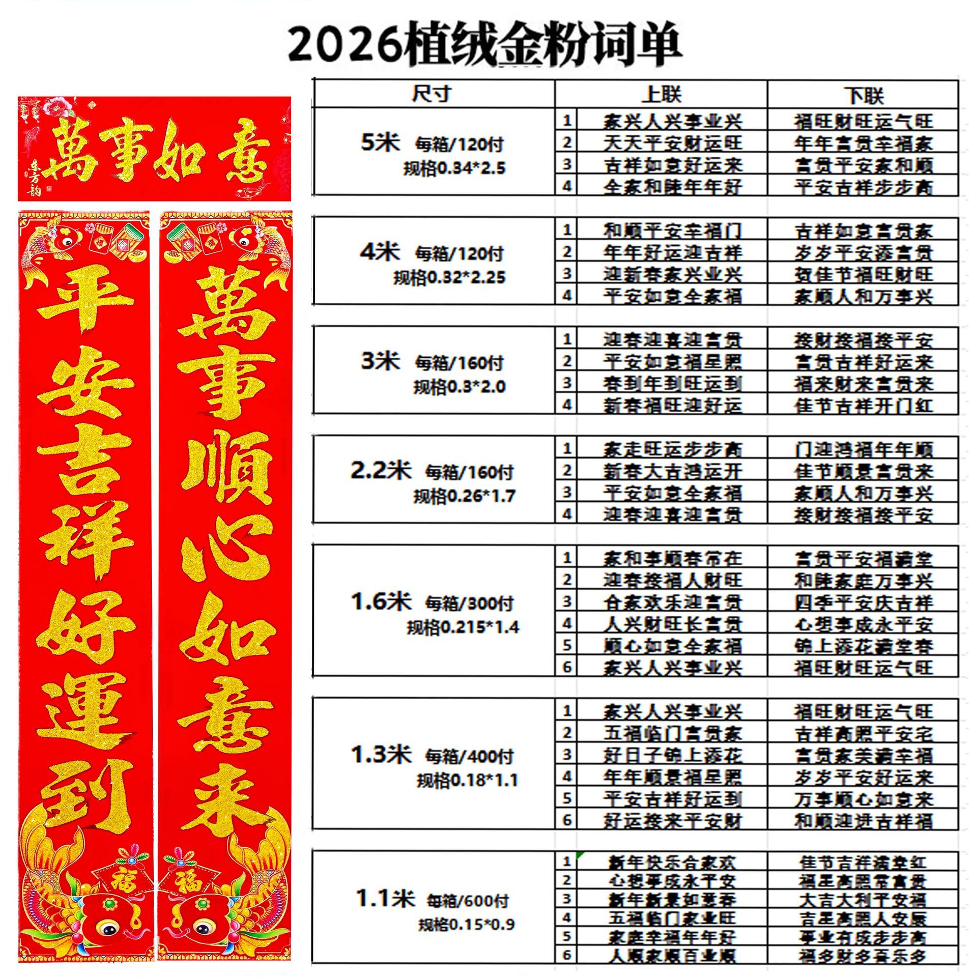 | 5 m [welcome the spring festival, great fortune and great wealth of the festival]] | CN¥ 9.15 | 8000 pair available |