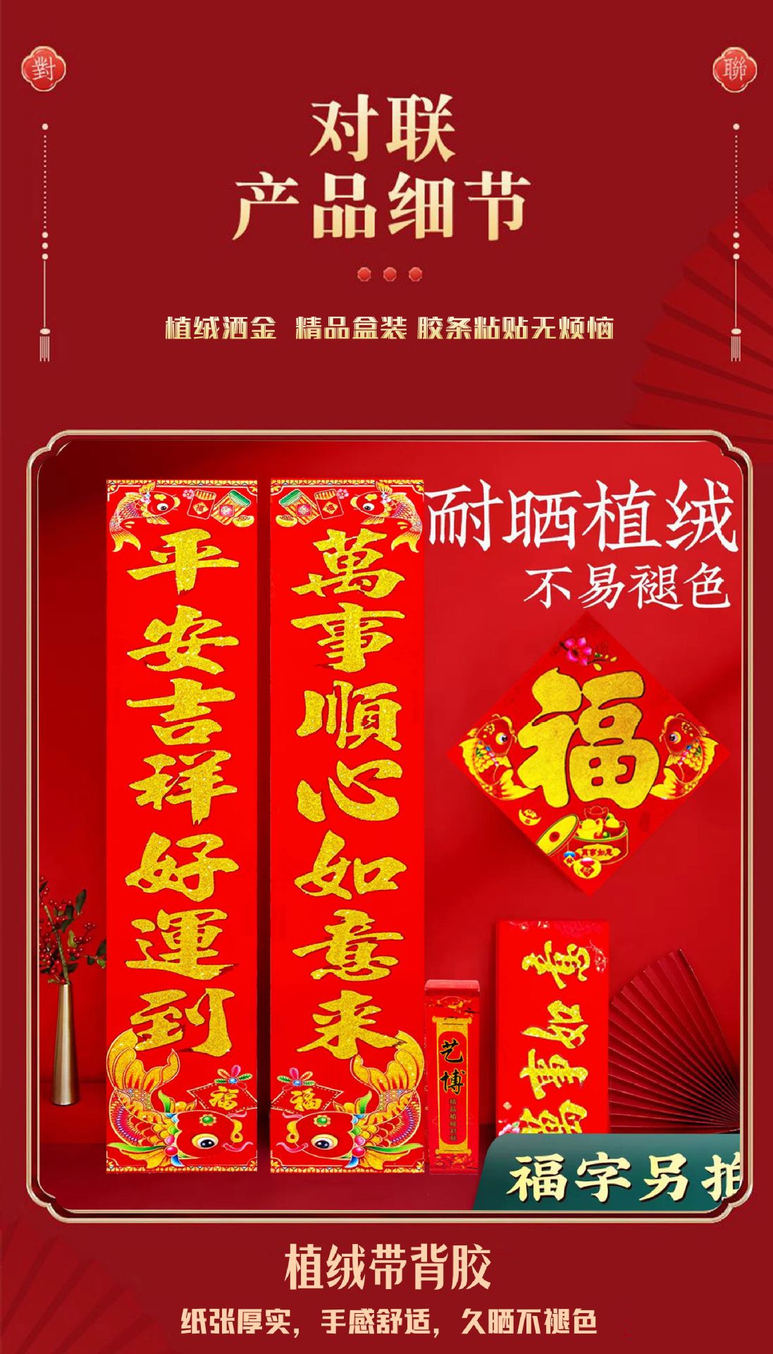 | 3 m [welcome to the spring, welcome to the rich and wealth, receive wealth, receive blessing, and receive peace]] | CN¥ 6.71 | 8000 pair available |