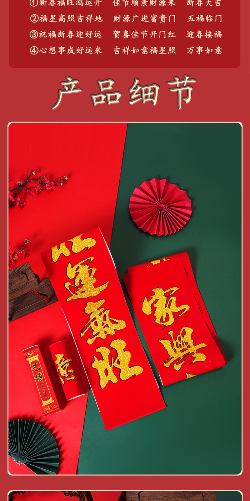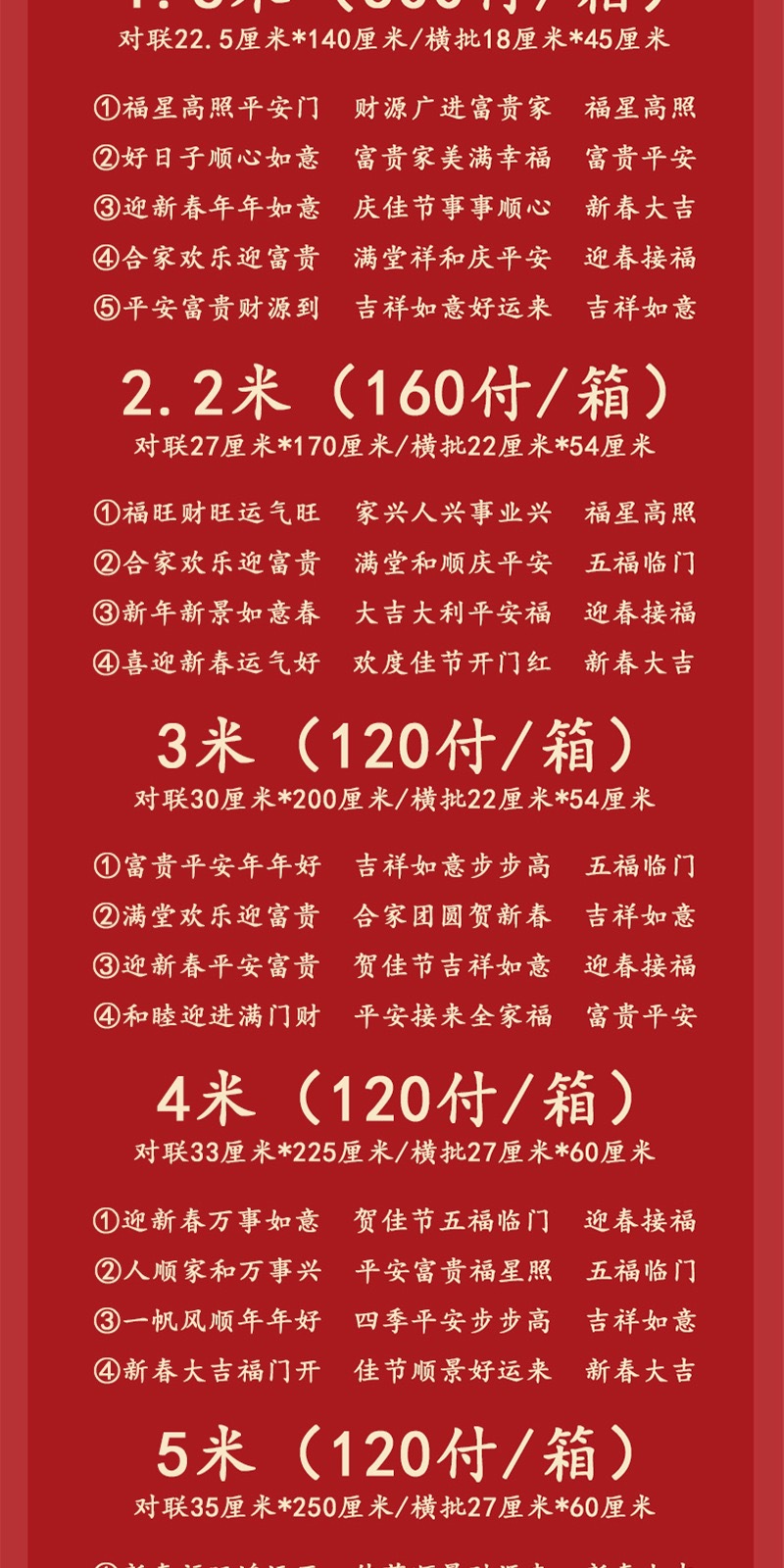 | 5 meters [blessing the new year to welcome good luck + happy new year to open the door]] | CN¥ 9.64 | 5000 pair available |