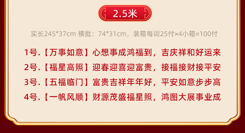2.0 m good luck, good luck, good luck, five blessings