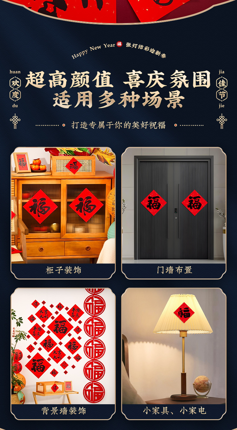 2026 new new year's large and small fu character set horse year entry door window sticker chinese new year decorative ornaments