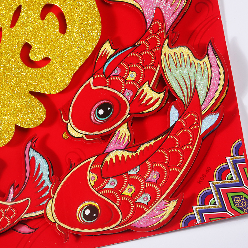 50# three-dimensional flocking paper-cut red blessing zodiac