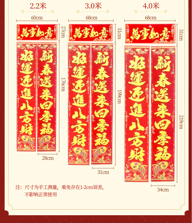 | 2.2 m no. 4, welcome the spring festival hongfu to jiqing xianghe good luck | CN¥ 30.38 | 994 pair available |