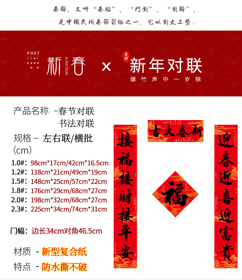 | new year calligraphy couplet (with adhesive/hand tearproof) | CN¥ 18.06 | 100 piece available |