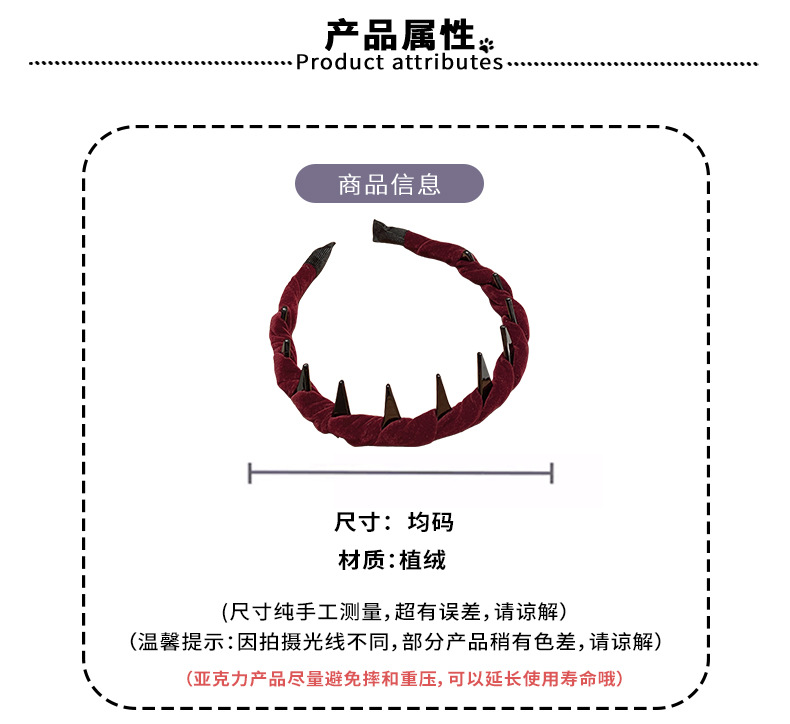 dark red flocking wide brim hair band
