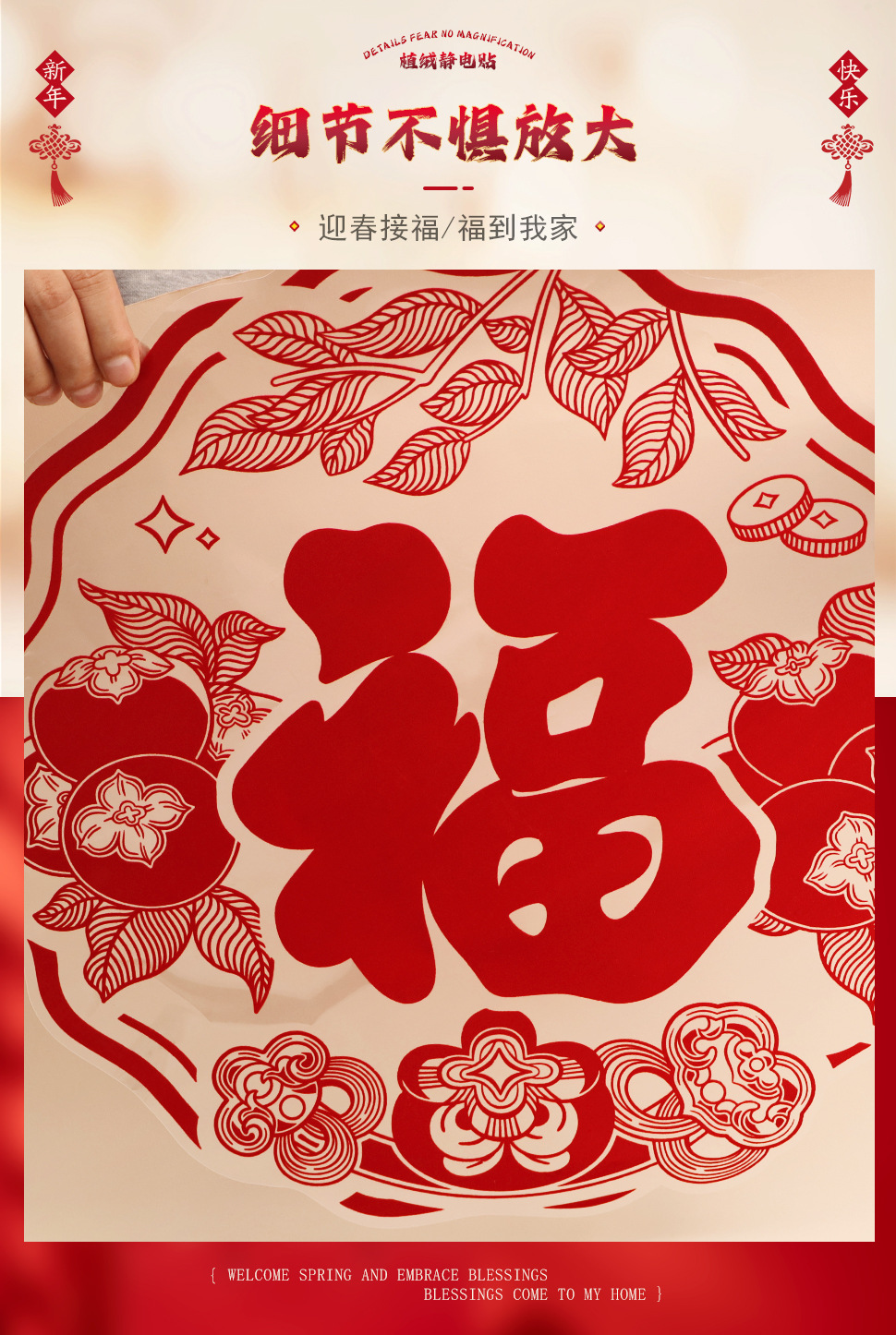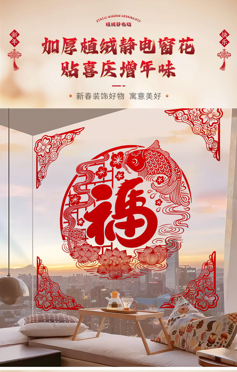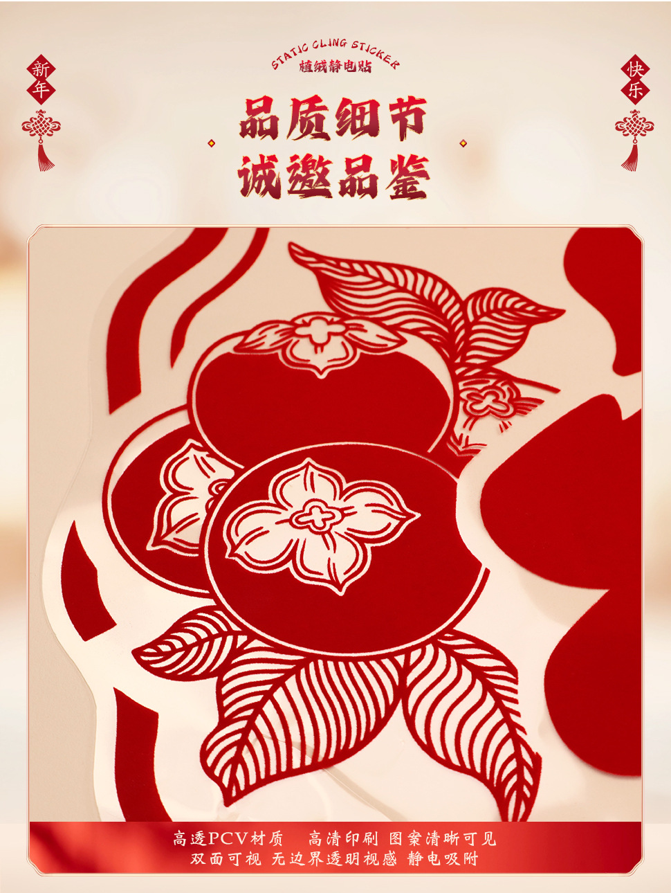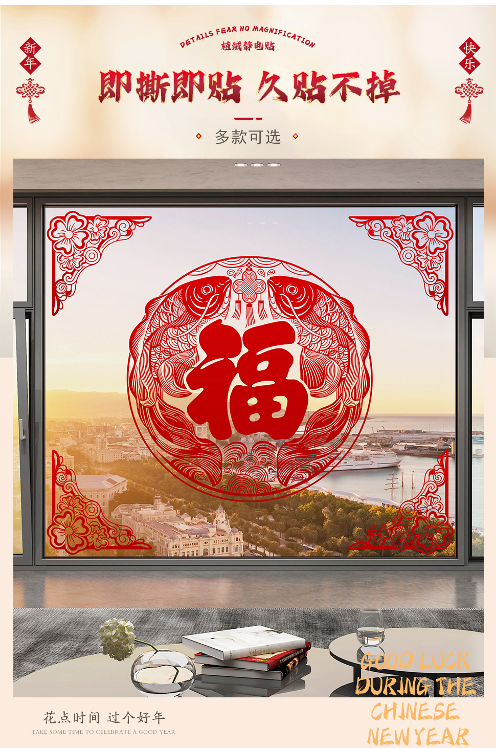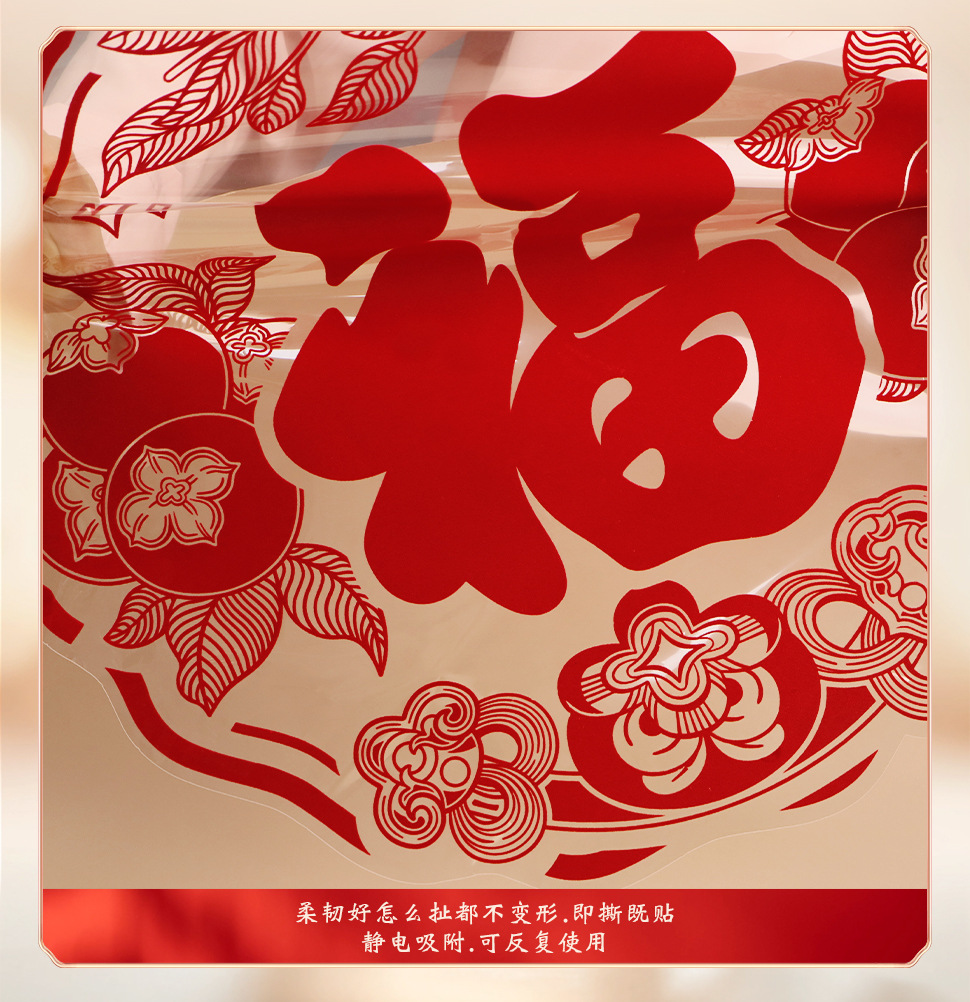 large new year flocking static sticker [1 set] fupersimmon duoduo