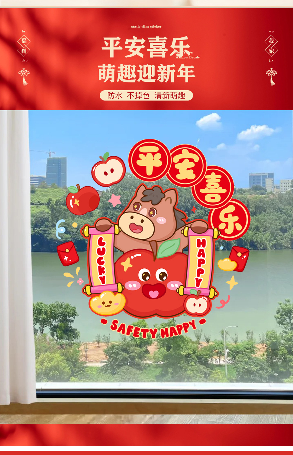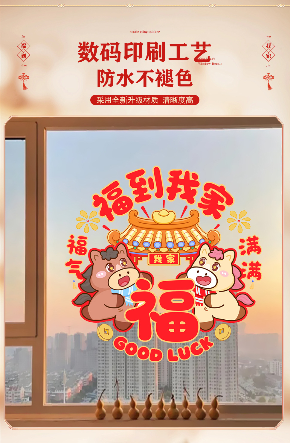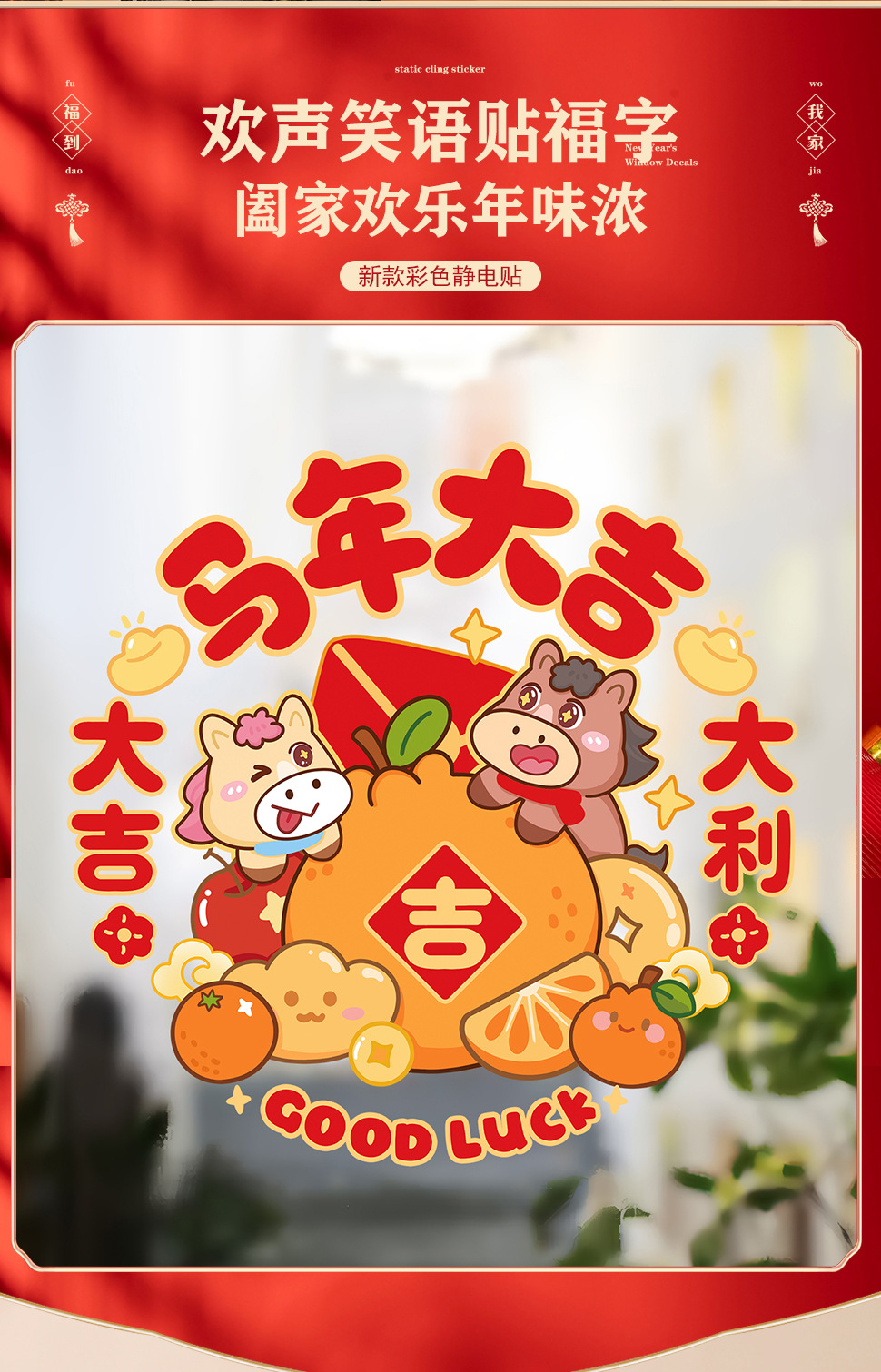 50 * 60cm new year window stickers [2] happy year of the horse + full of blessings