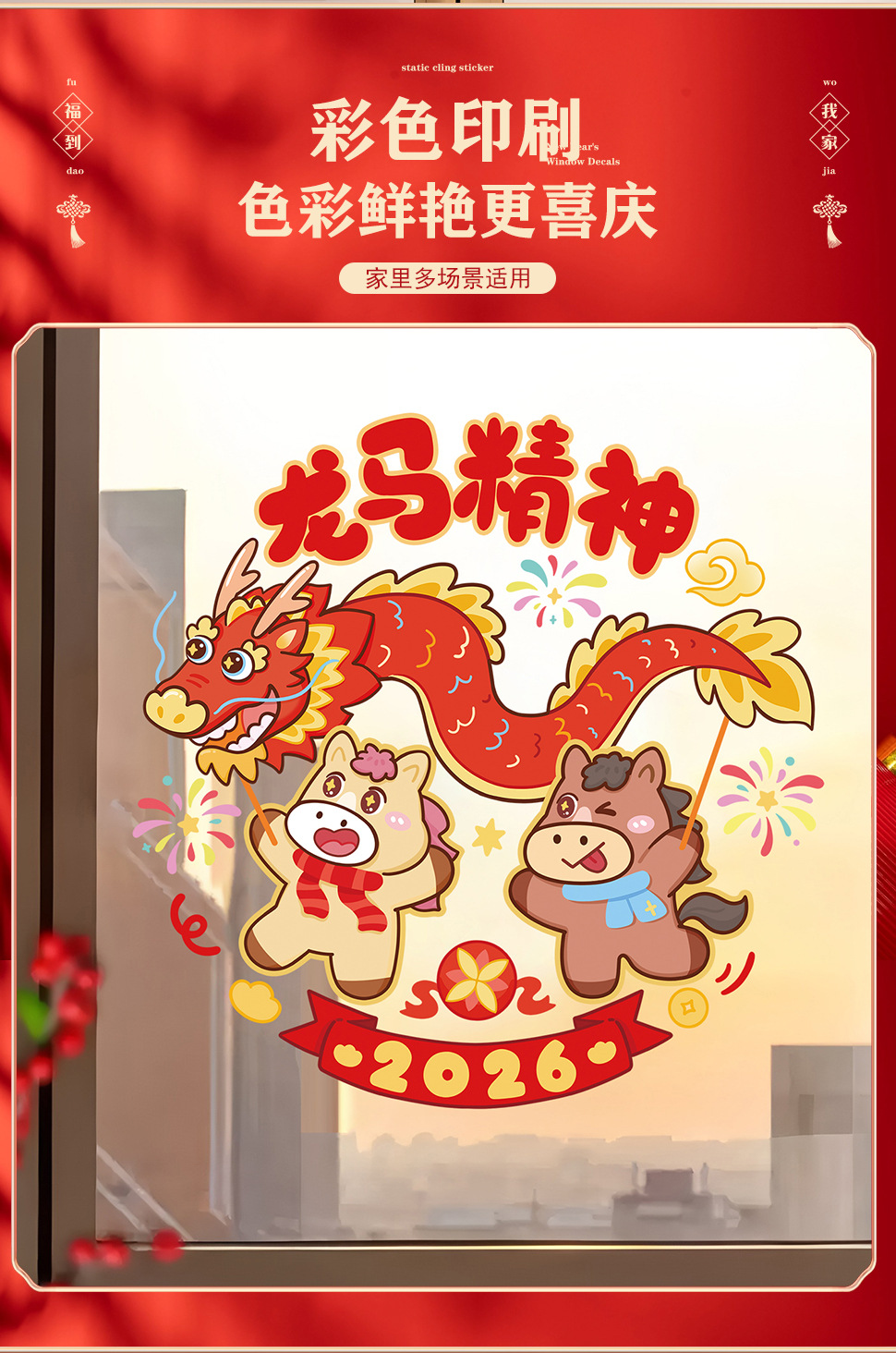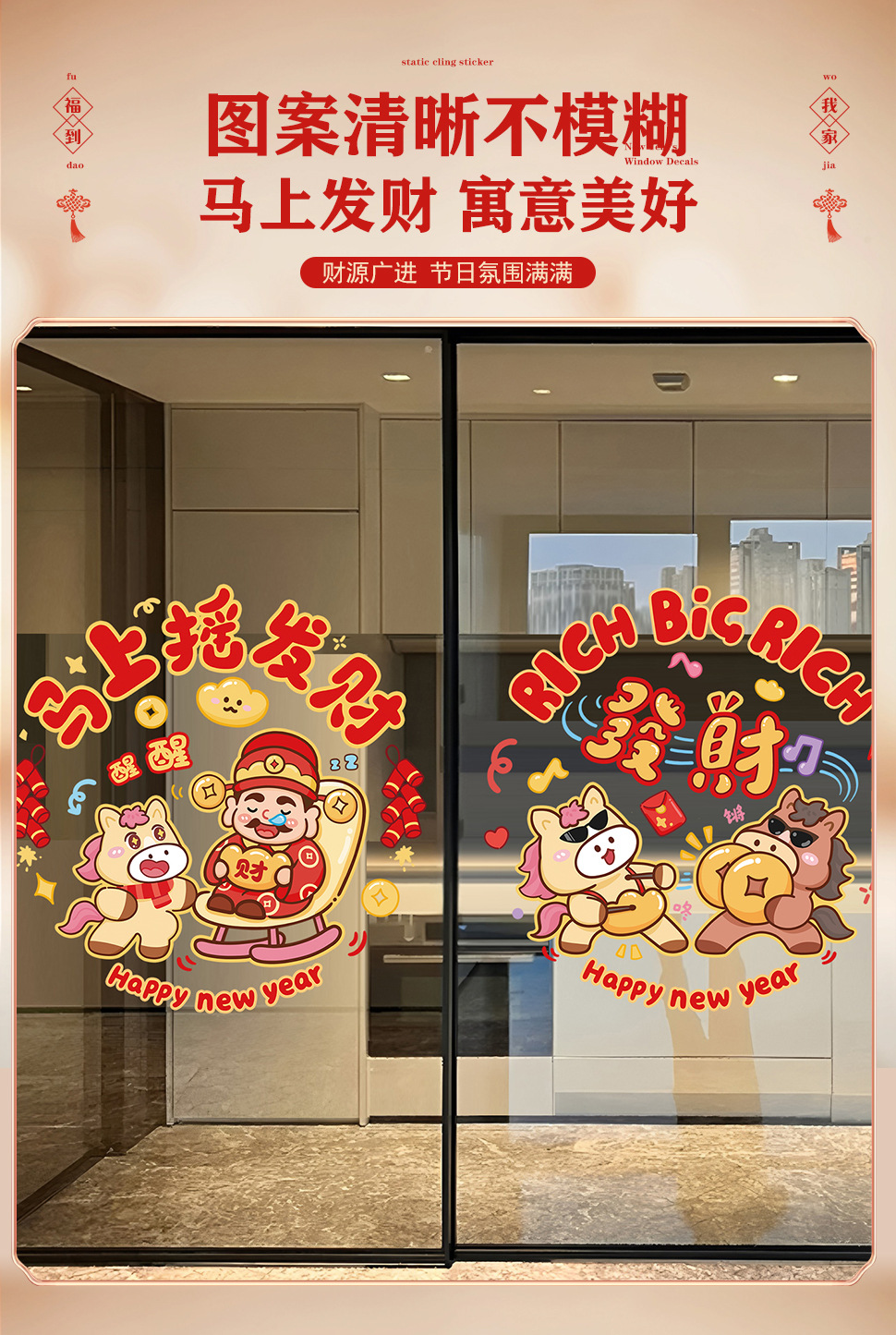 50 * 60cm new year window stickers [2 pieces] full of blessings + financial resources rolling