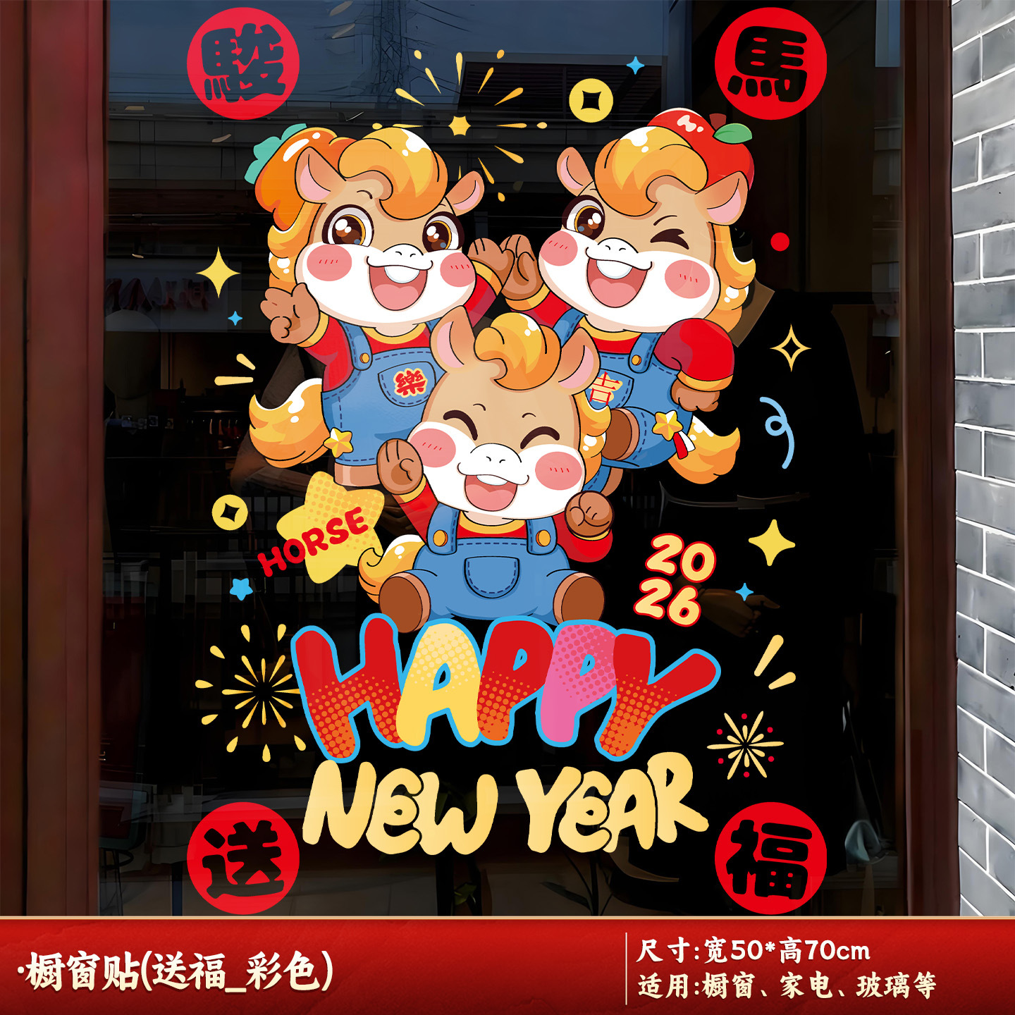 [horse sending blessing] new year original window stickers/1 piece