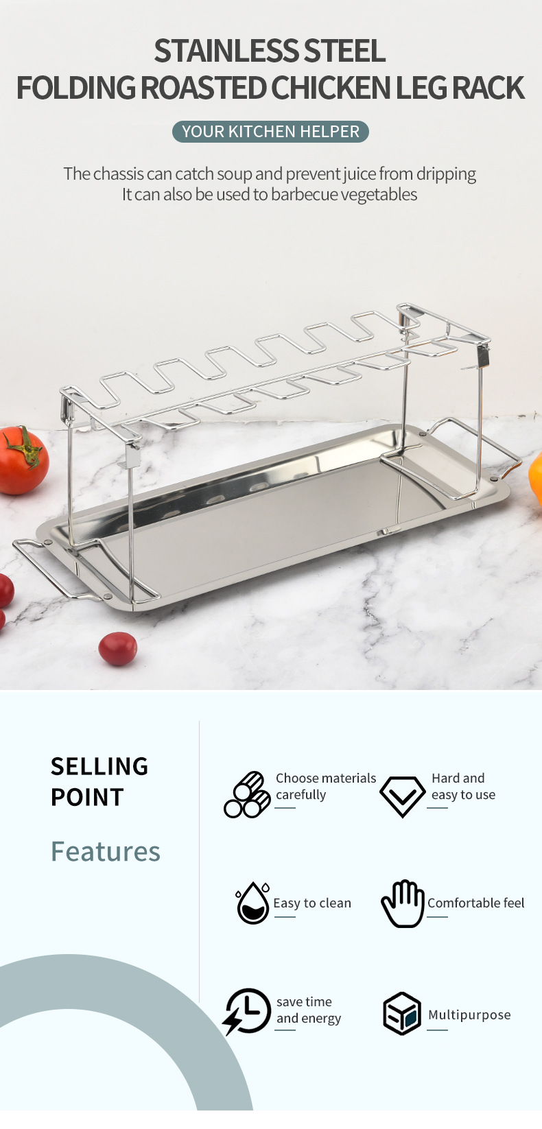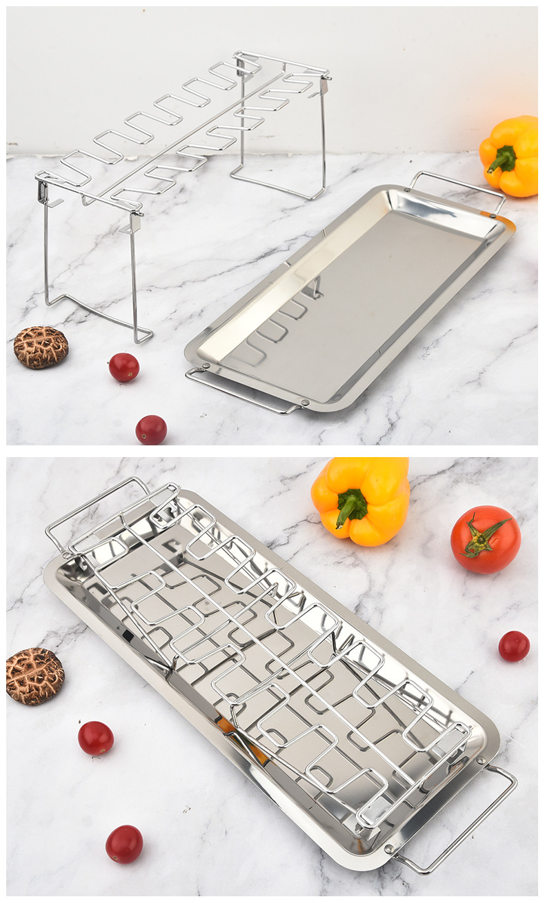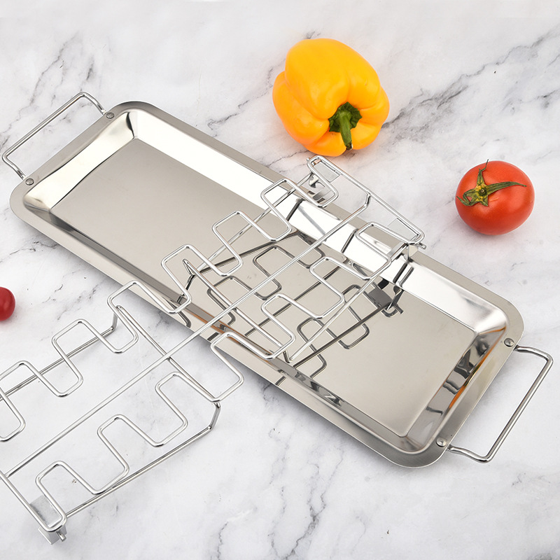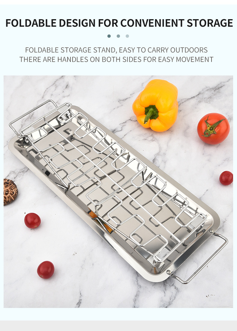 stainless steel folding drumstick rack outdoor portable baking rack with chassis folding grill bbq tools