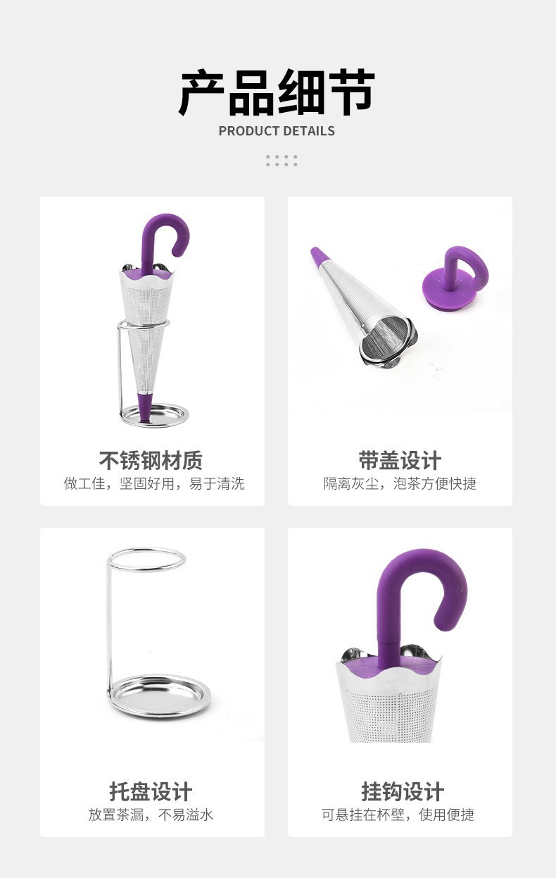 304 stainless steel filter creative umbrella tea strainer partition tea strainer silicone handle tea making device accessories