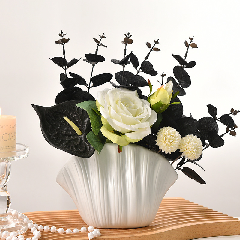 shell creative plain white vase + eucalyptus roland bouquet