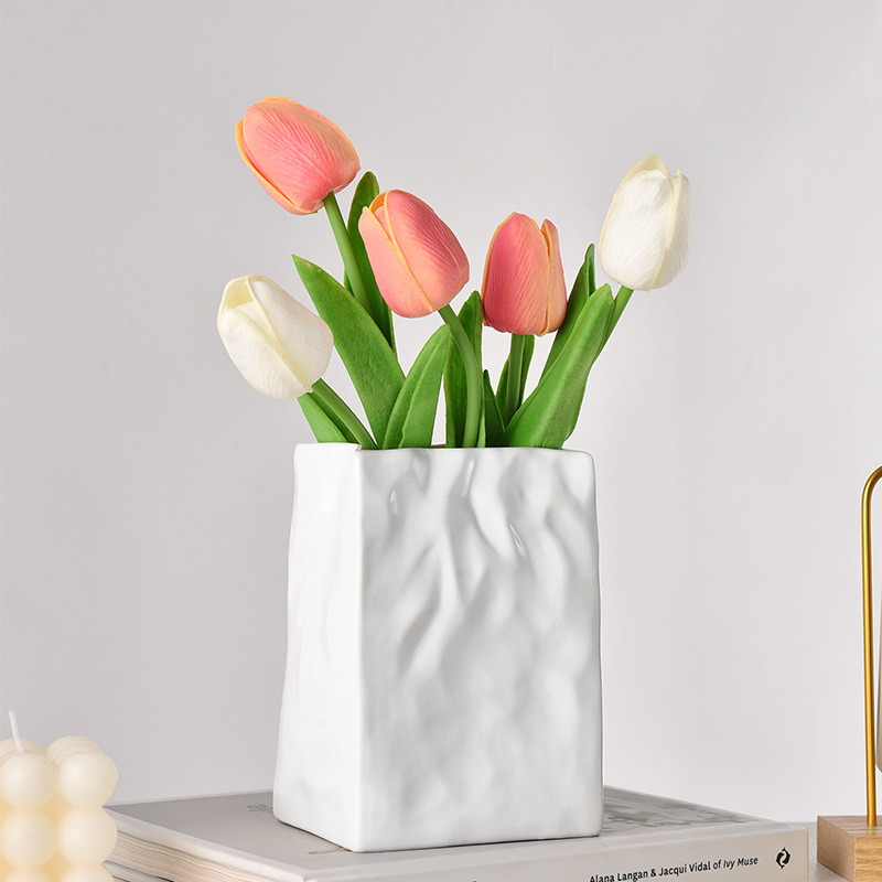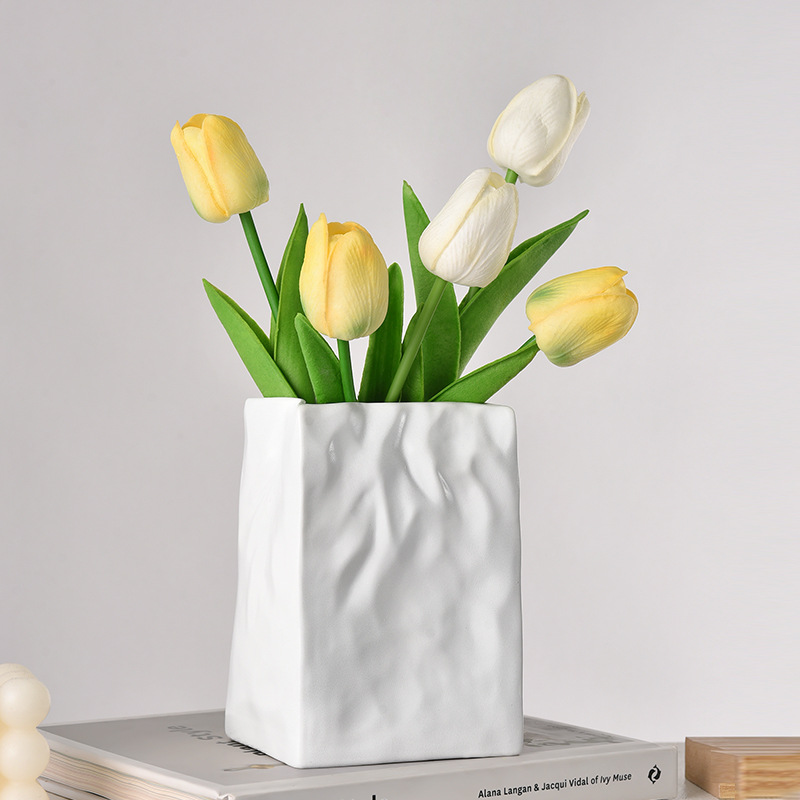 pleated creative plain white vase +2 white tulip +3 champagne tulip