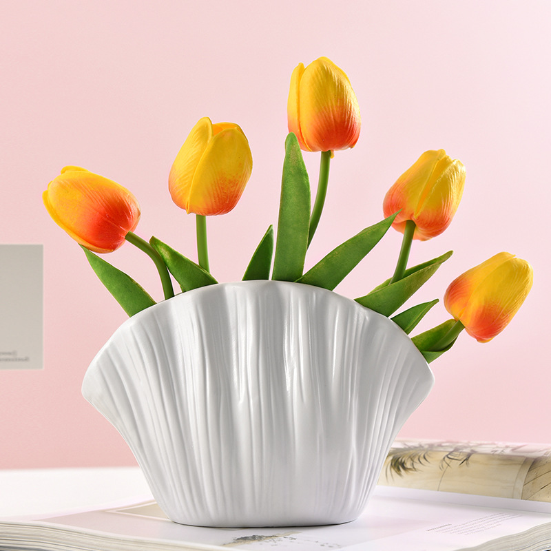 shell creative plain white vase +5 orange tulip