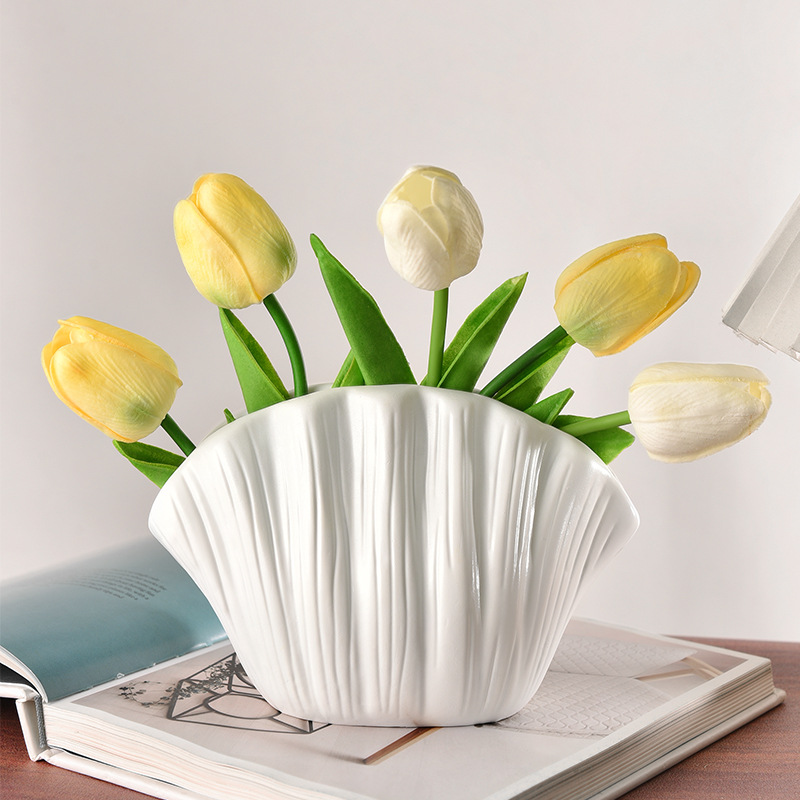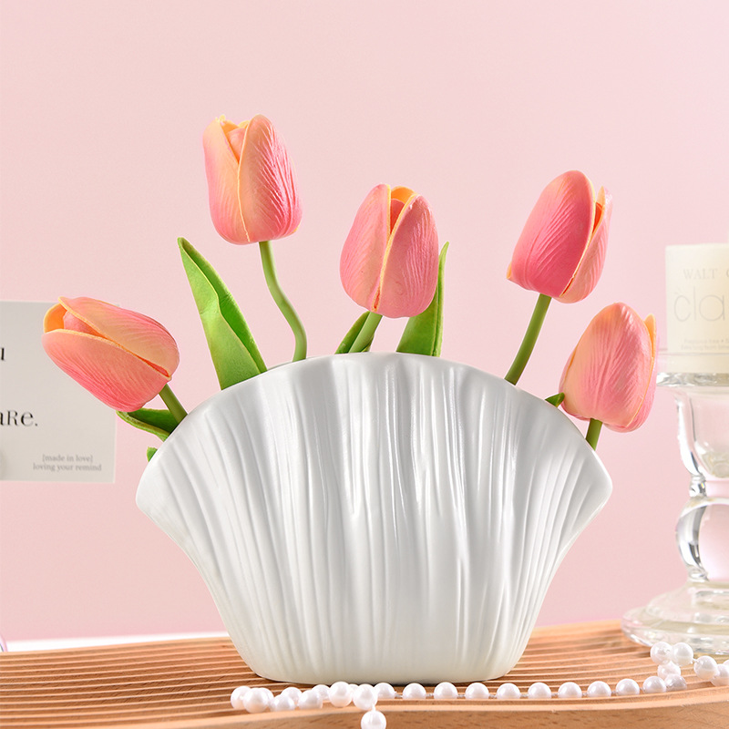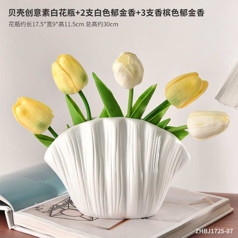 shell creative plain white vase +2 white tulip +3 champagne tulip