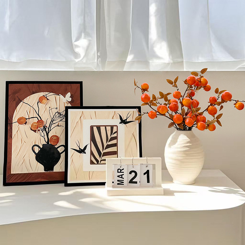 corrugated spindle vase + persimmon 28 fruit + decorative painting * 2 + fashion calendar