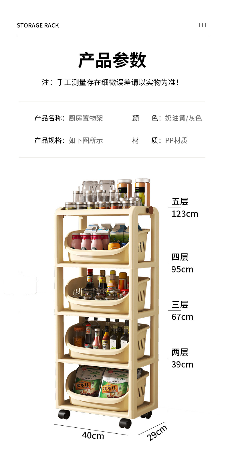 [5 layers-cream yellow] storage basket can be taken out independently