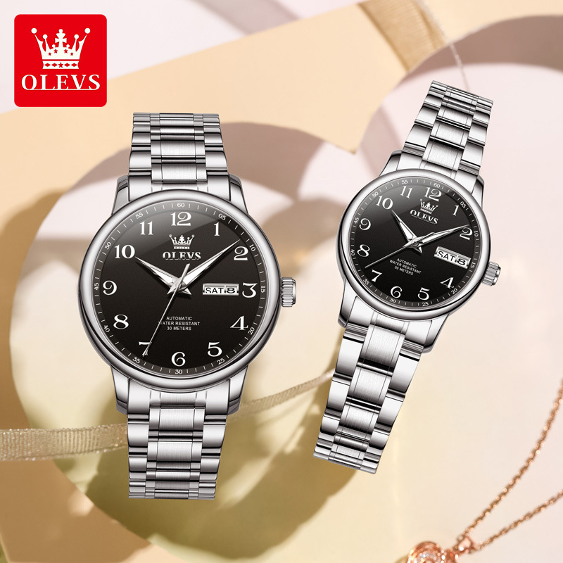 7072 steel belt black men's and women's couple watch