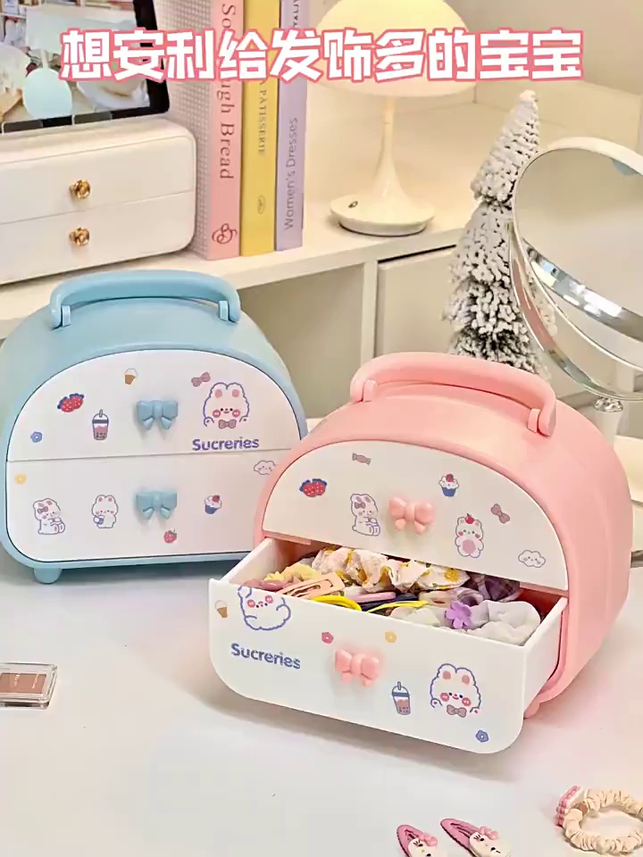 blue cute jewelry storage box + running rabbit stickers